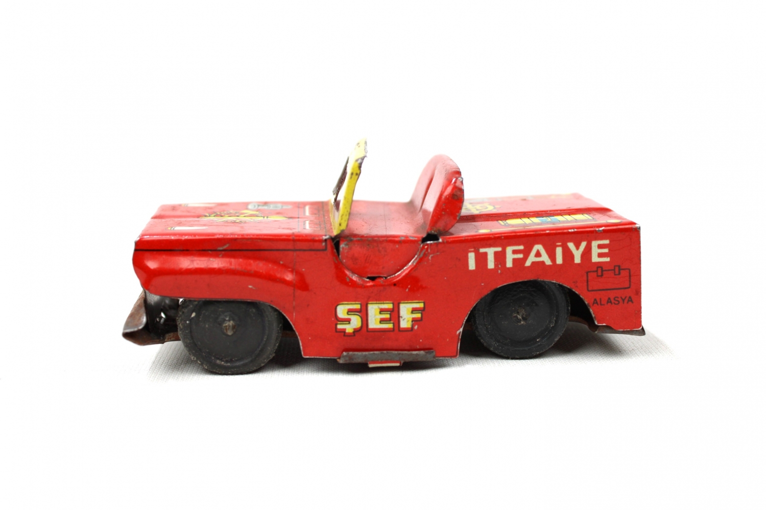Alasya markalı, teneke itfaiye aracı, Türk Malı, 3x4x8cm
