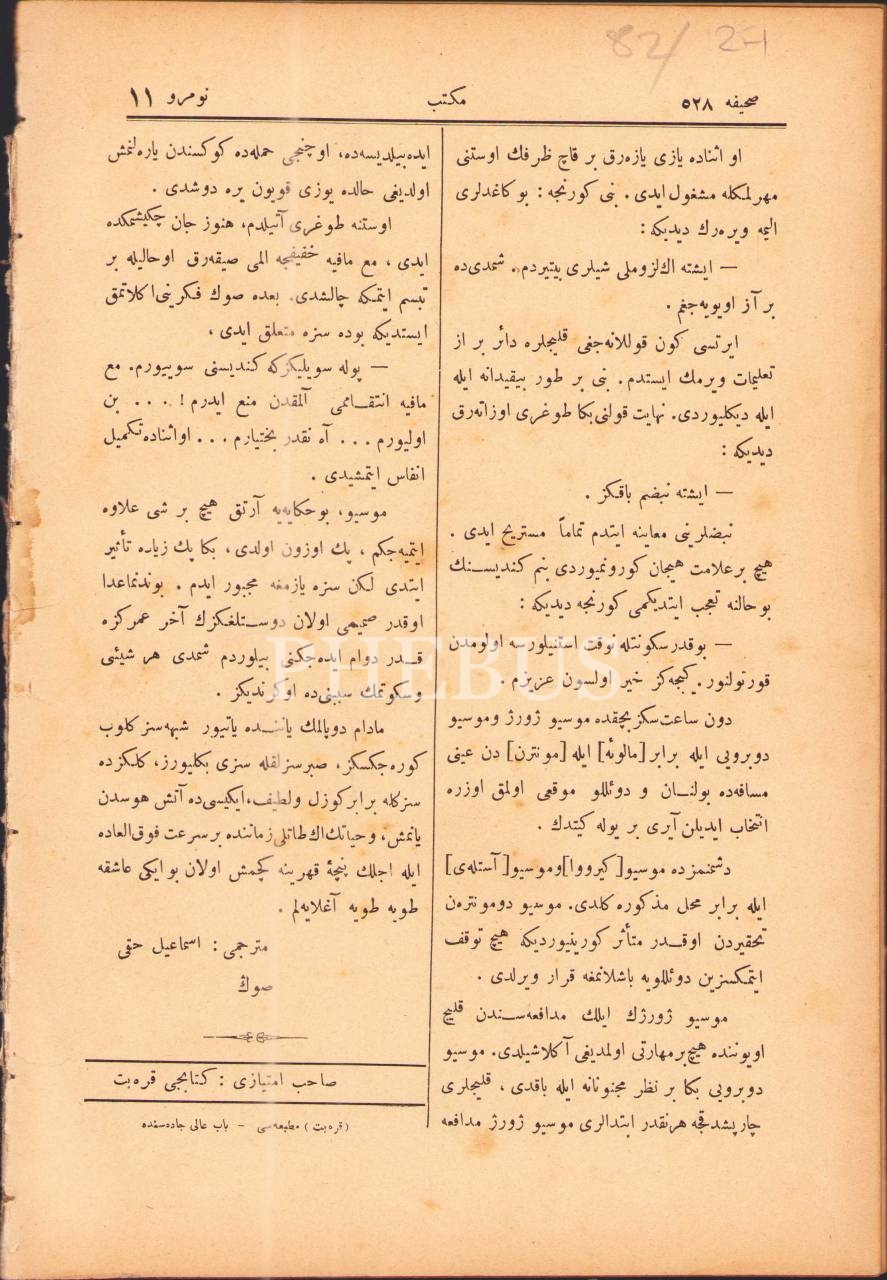 Edebî ve fennî Mekteb dergisinin 1311 yılında yayımlanmış 9-11. sayıları, 18x27 cm