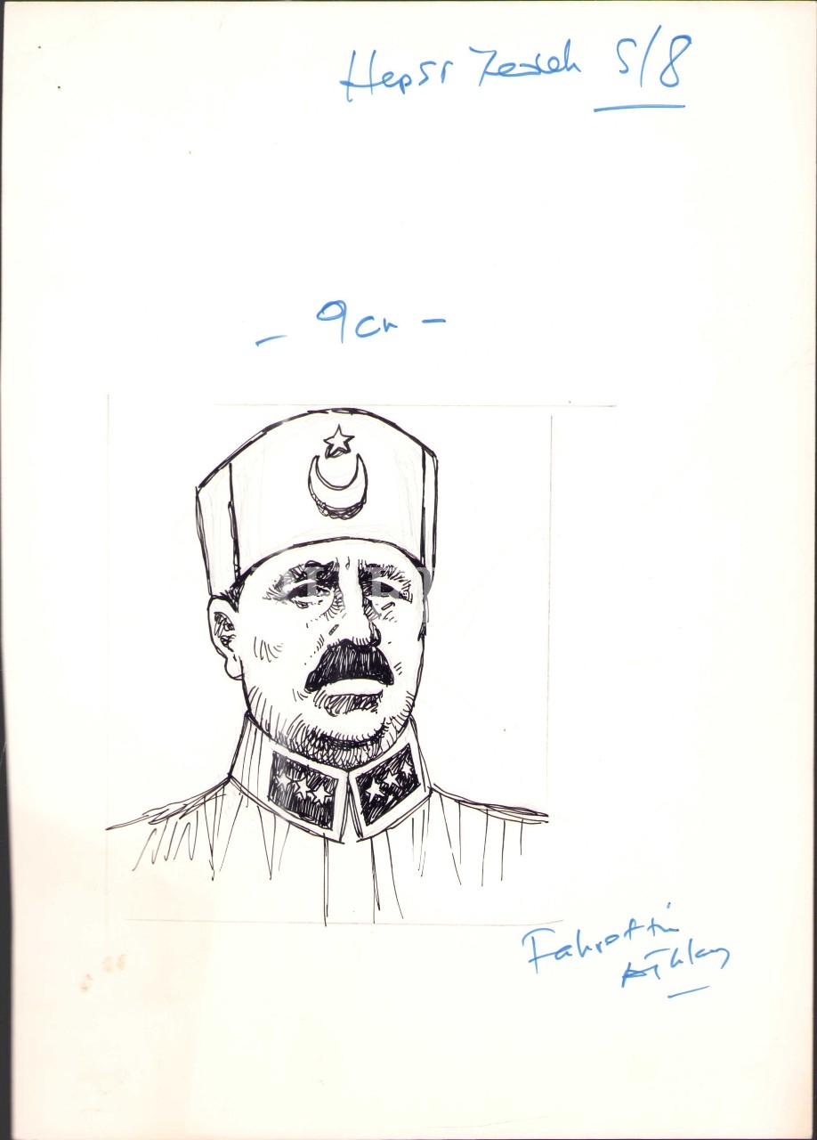 Kurtuluş Savaşı kahramanlarından Fahrettin Altay´ın orijinal portre çizimi, 21x30 cm