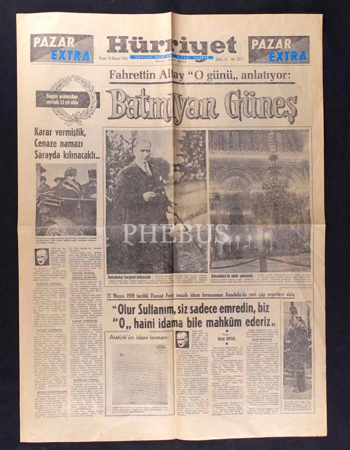 Hürriyet gazetesinin 10 Kasım 1963 tarihli ve Atatürk kapaklı sayısı, 42x58 cm