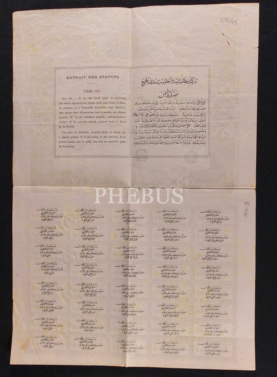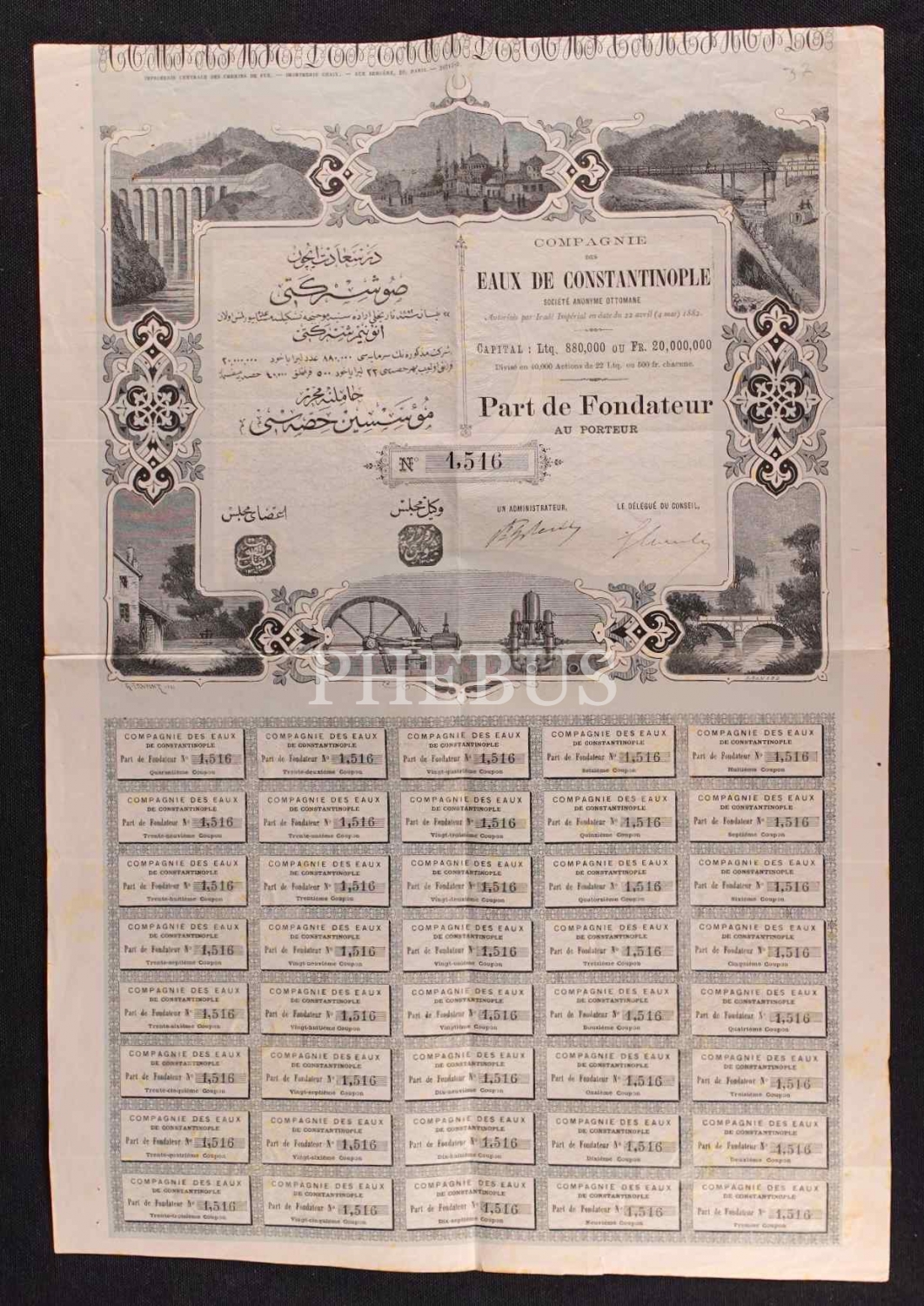 Dersaadet İçin Su Şirketi´ne ait Osmanlıca-Fransızca hisse senedi, 29x43 cm