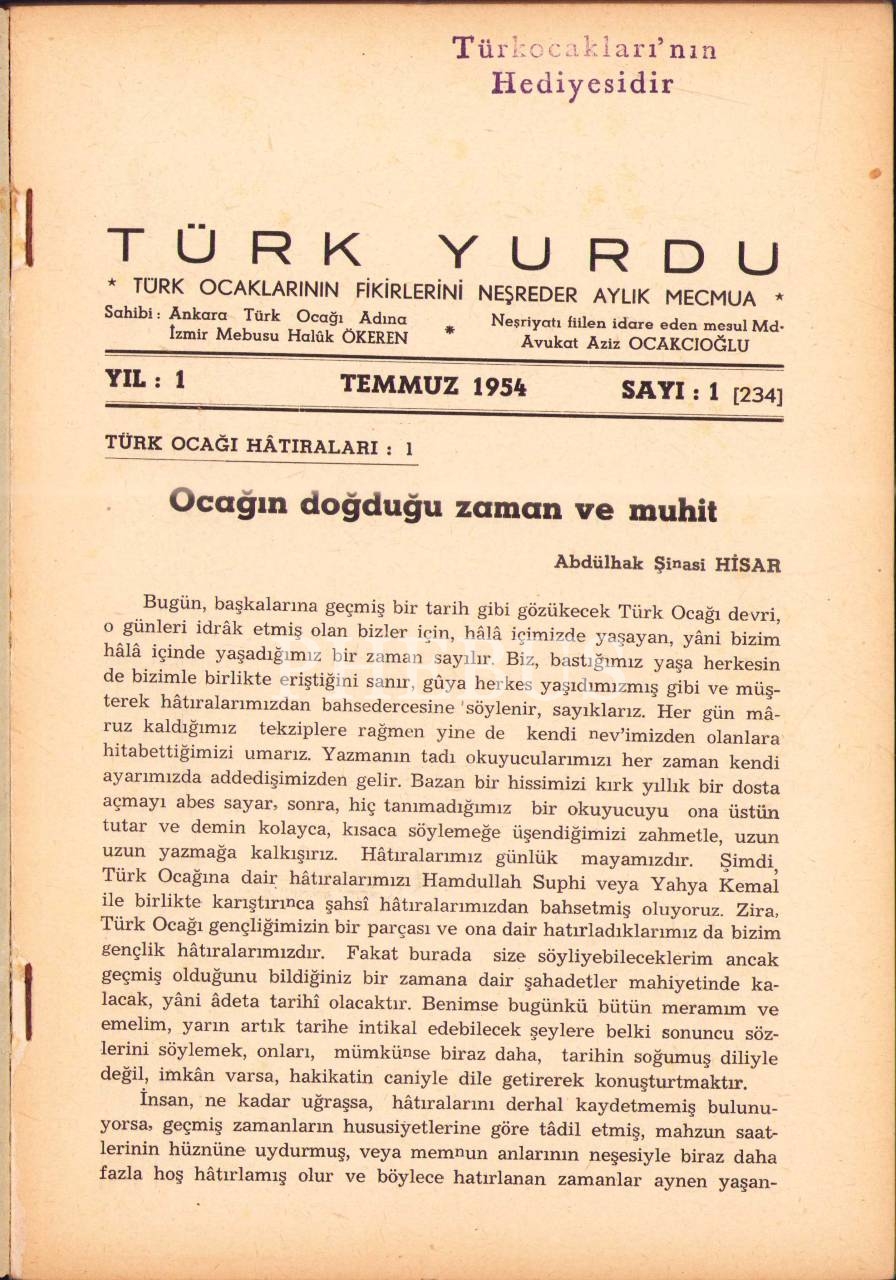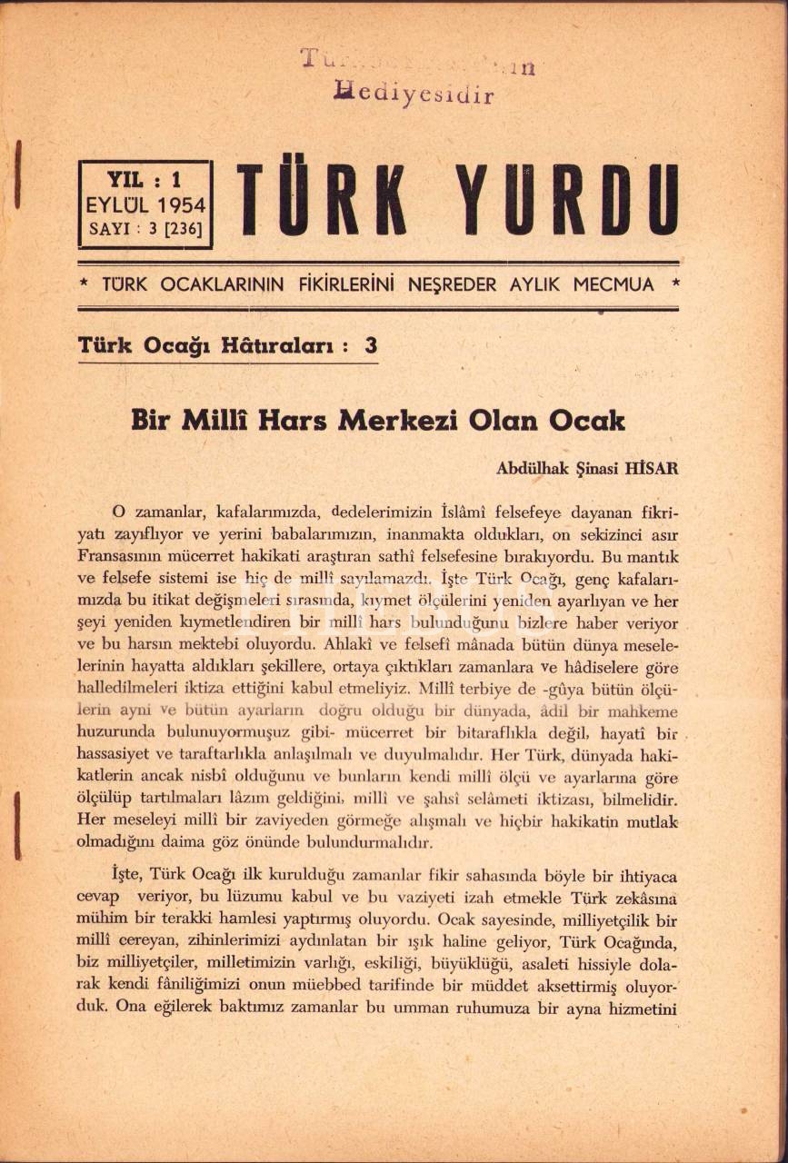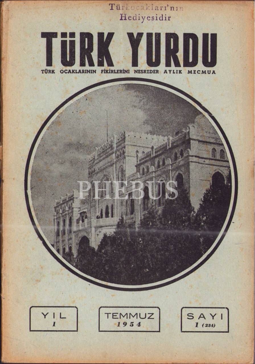 Türk Ocaklarının yayın organı Türk Yurdu dergisinin 1954 yılında yayımlanmış 1 ve 3. sayıları, 16x24 cm