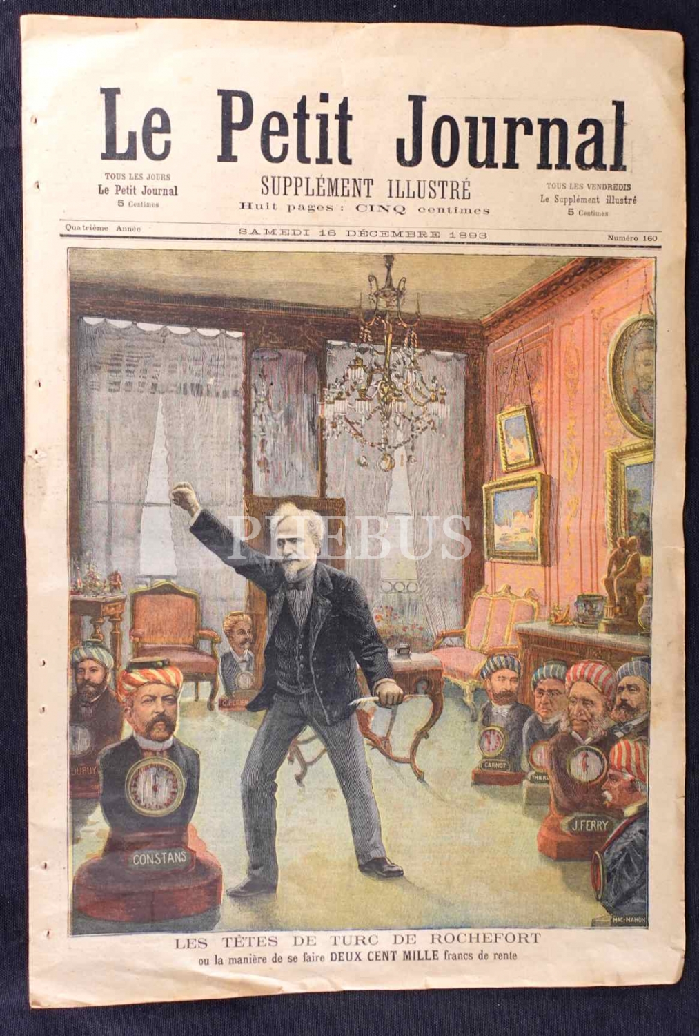 Le Petit Journal dergisinin "Rochefort´un Türk Başları" yazılı kapak görseliyle 16 Kasım 1893 tarihli sayısı, 30x44 cm