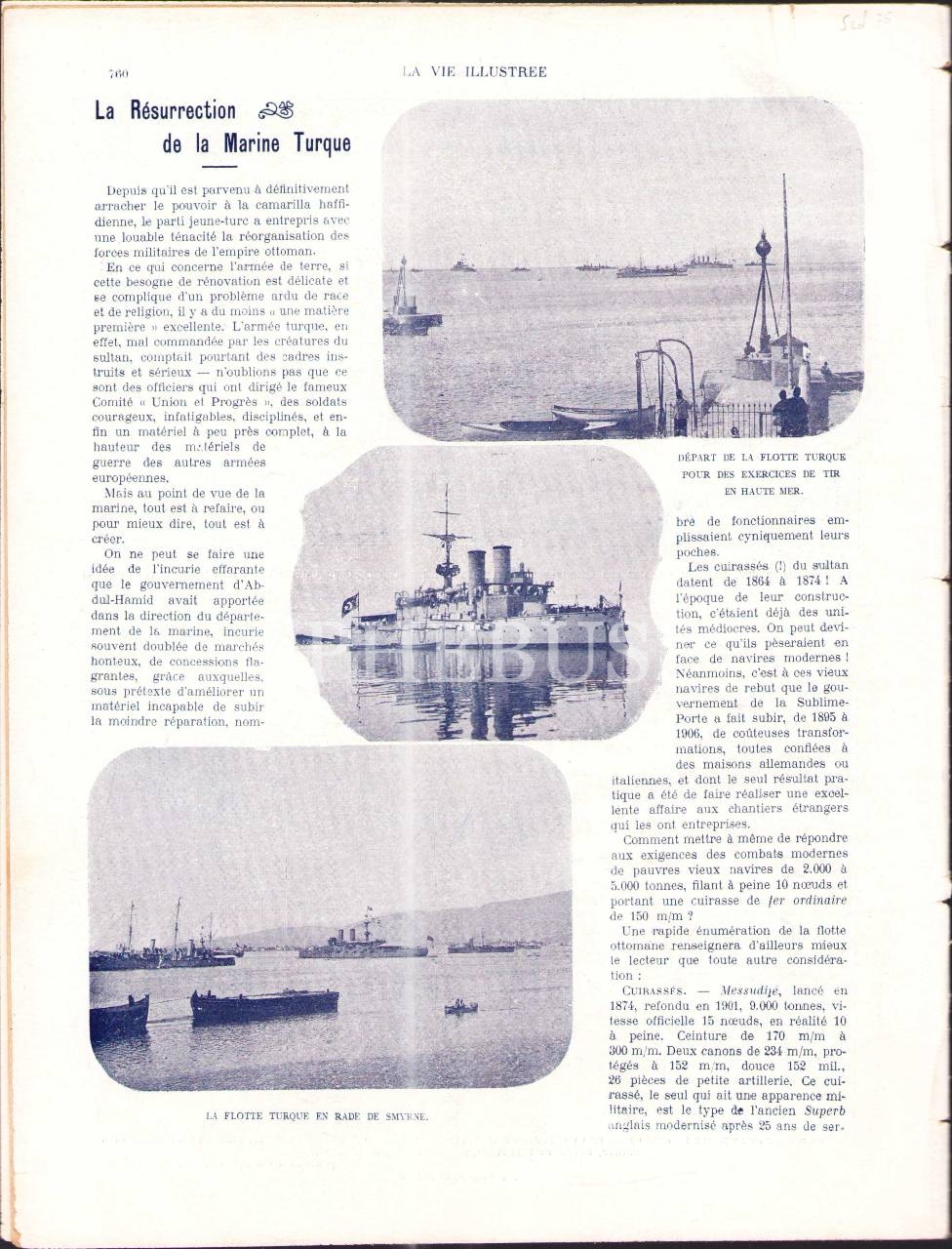 La Vie Illustree dergisinin Fuad savaş gemisinin mürettebatına dair kapak görseliyle 13 Kasım 1909 tarihli sayısı, 23x30 cm