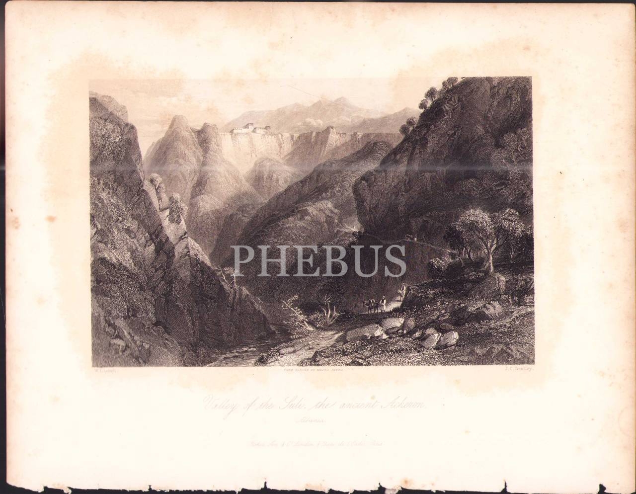 Suli Vadisi-Antik Acheron/Arnavutluk gravürü, ed. W.L. Leitch-J.C. Bentley, 21x27 cm