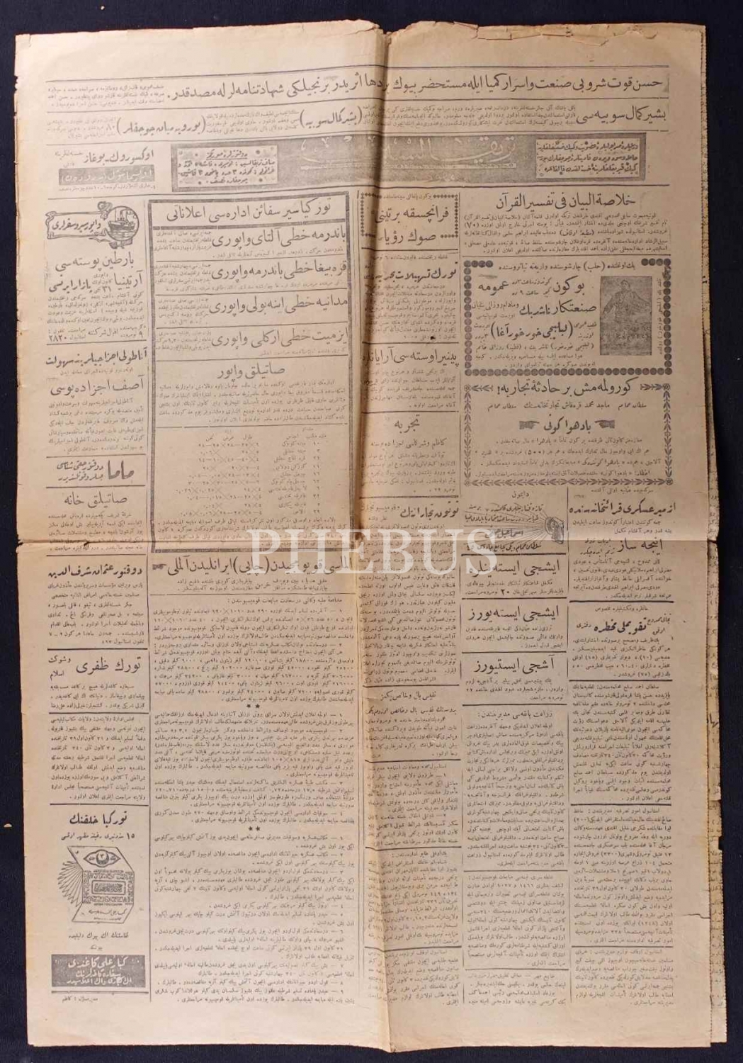 Tevhid-i Efkâr gazetesinin 30 Kanunuevvel 1923 tarihli sayısı, 42x63 cm