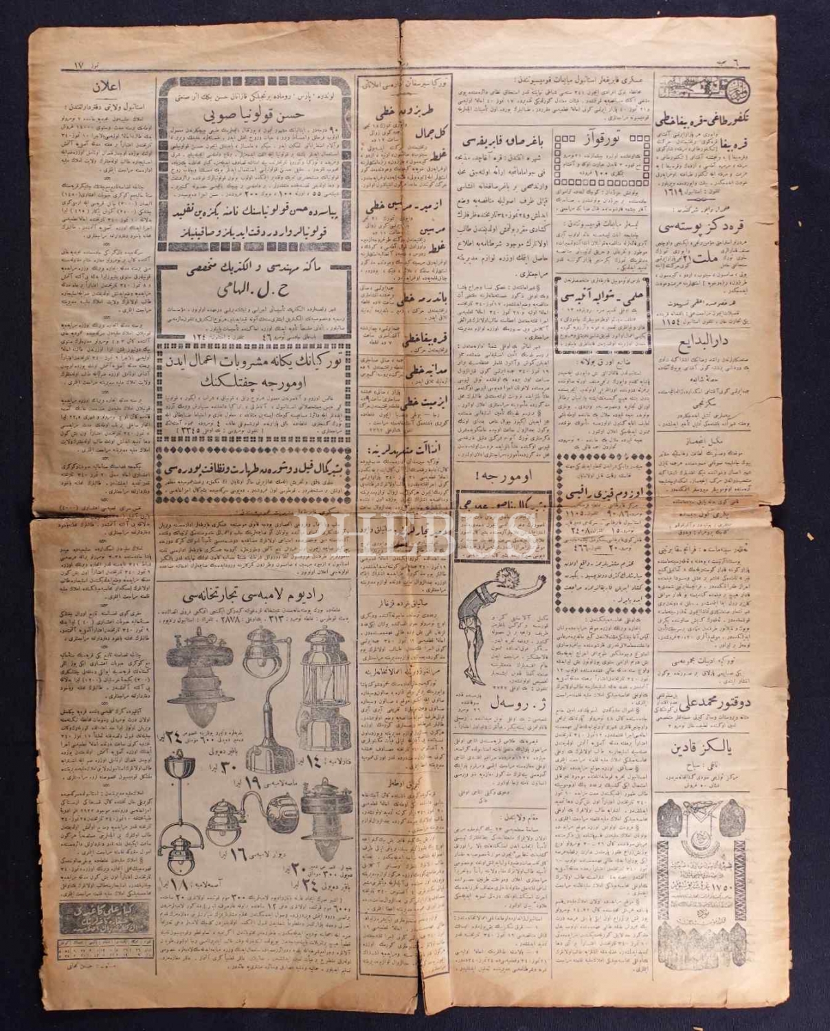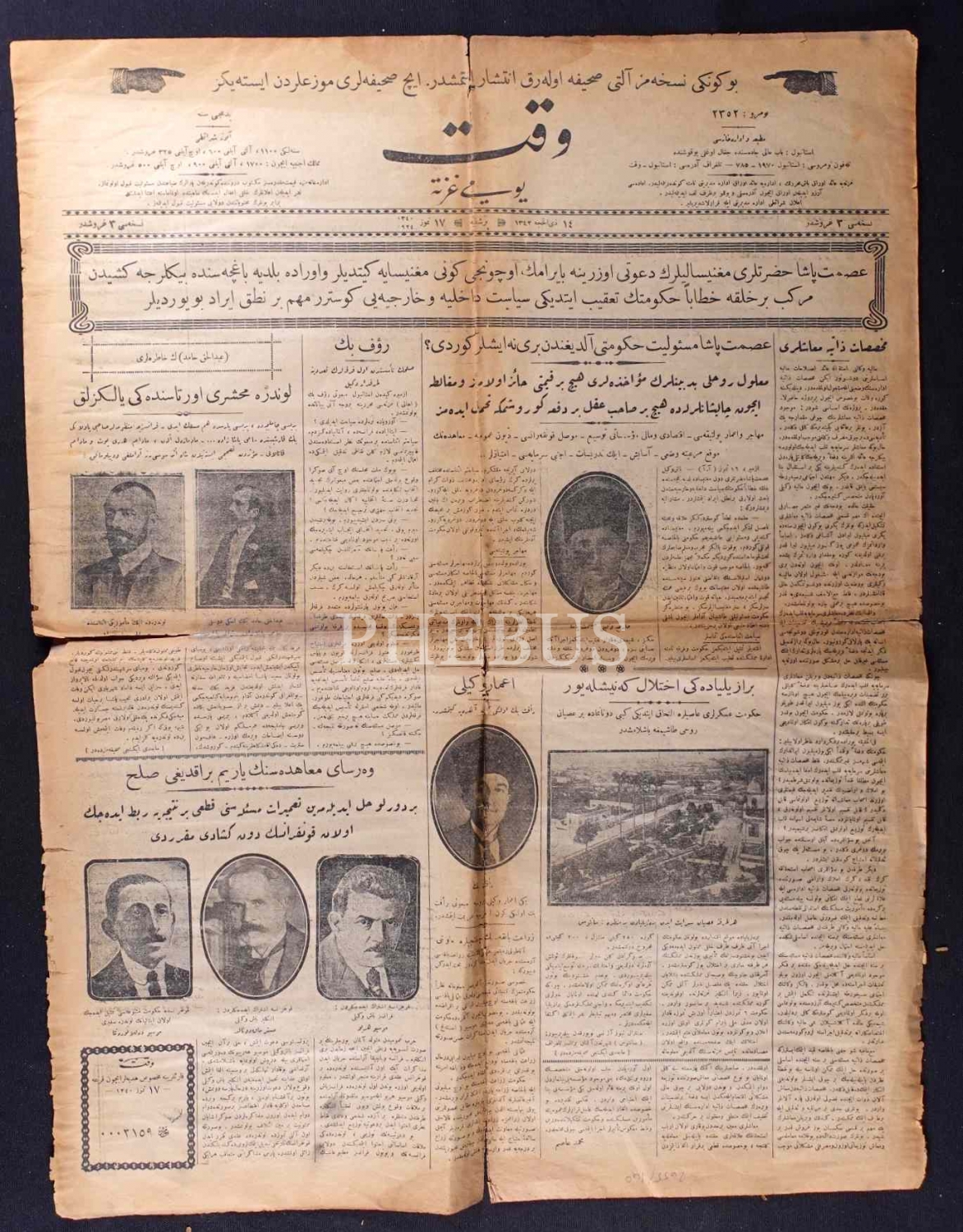 Vakit gazetesinin 17 Temmuz 1924 tarihli sayısı, 47x62 cm, ortadan kısmen ayrık haliyle
