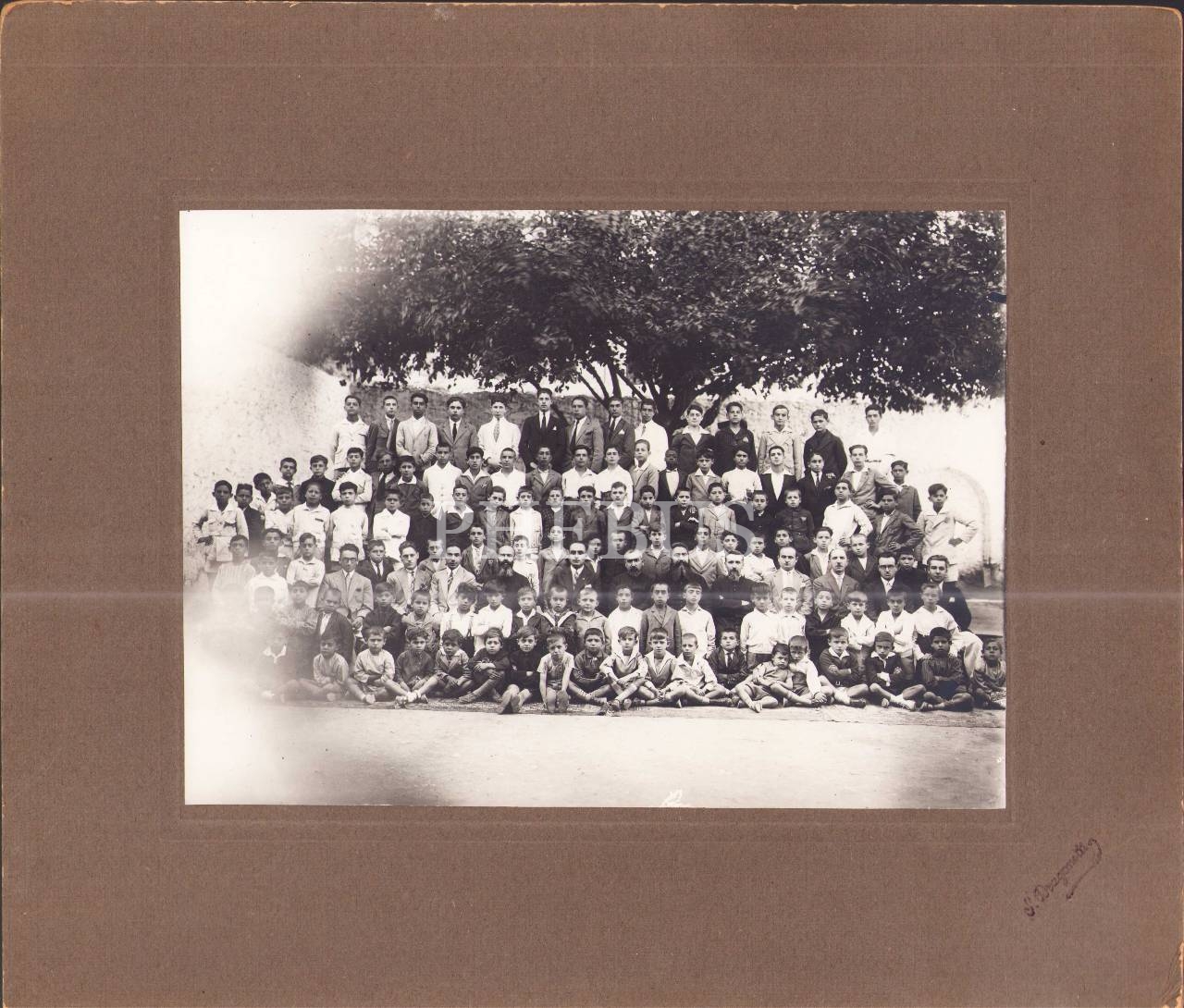 Ermeni yetimhanesinde toplu hatıra fotoğrafı, S. Oragonetti, Ermenice damgalı, 29x34 cm