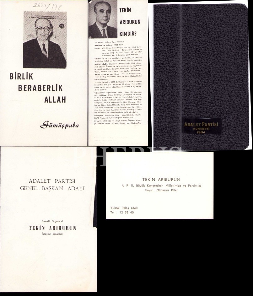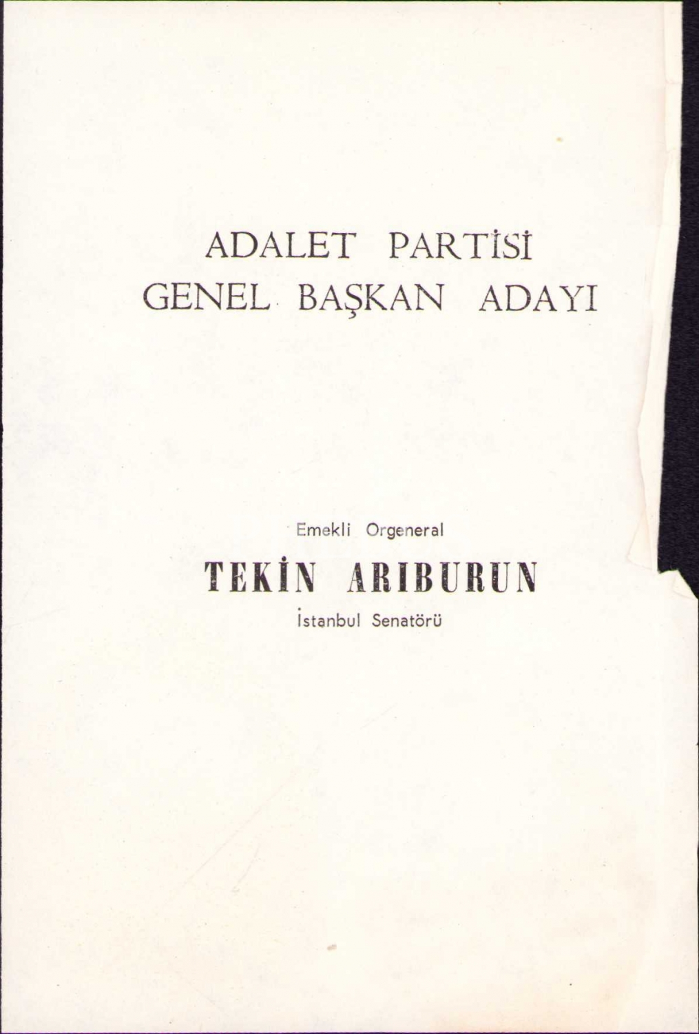 Tekin Arıburun´a ait Adalet Partisi Kongresi aday tanıtım dosyası, 12x18 cm