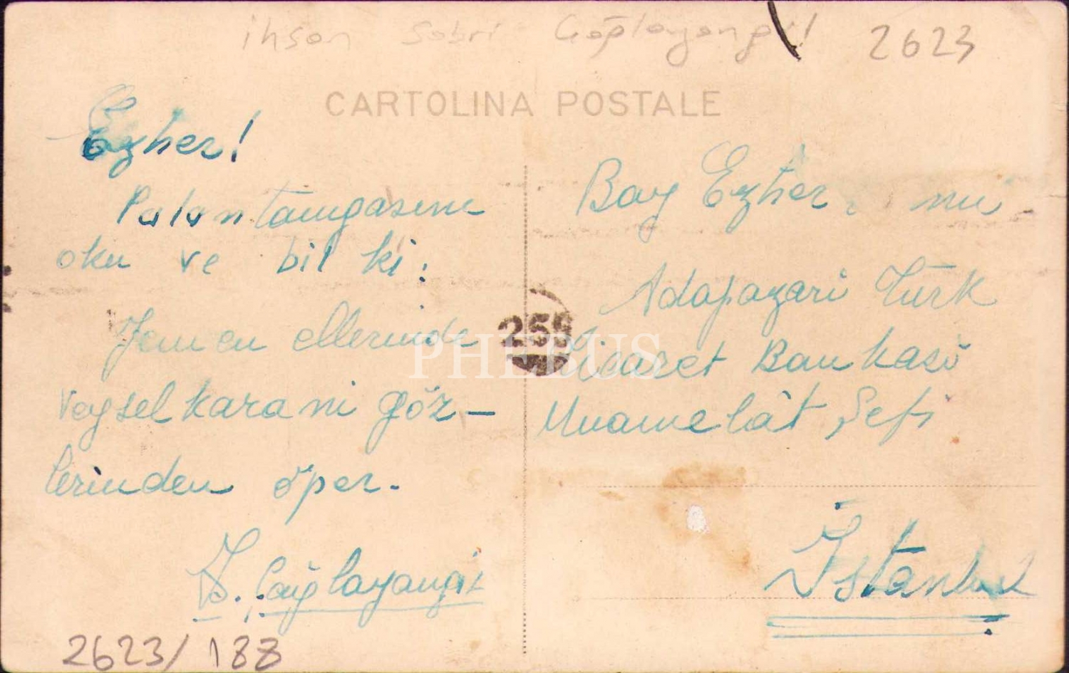 Tarihî yapı görselli mektup kartı, İhsan Sabri Çağlayangil’den imzalı