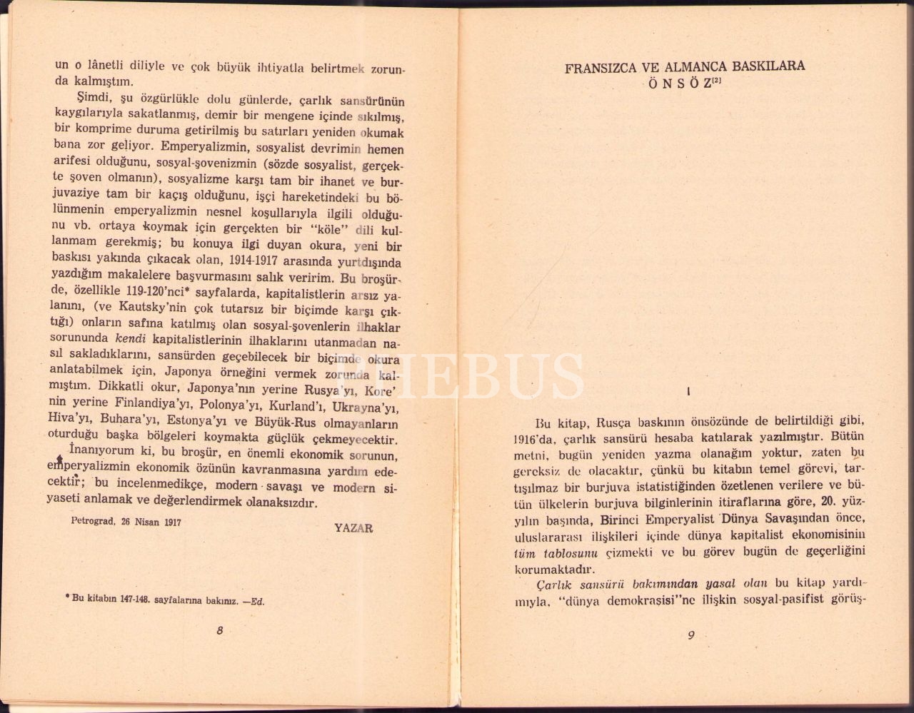EMPERYALİZM KAPİTALİZMİN EN YÜKSEK AŞAMASI, V.İ. Lenin, çev. Cemal Süreya, Sol Yayınları, Ankara, 175 s., 13x20 cm