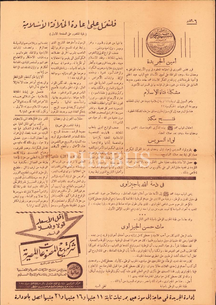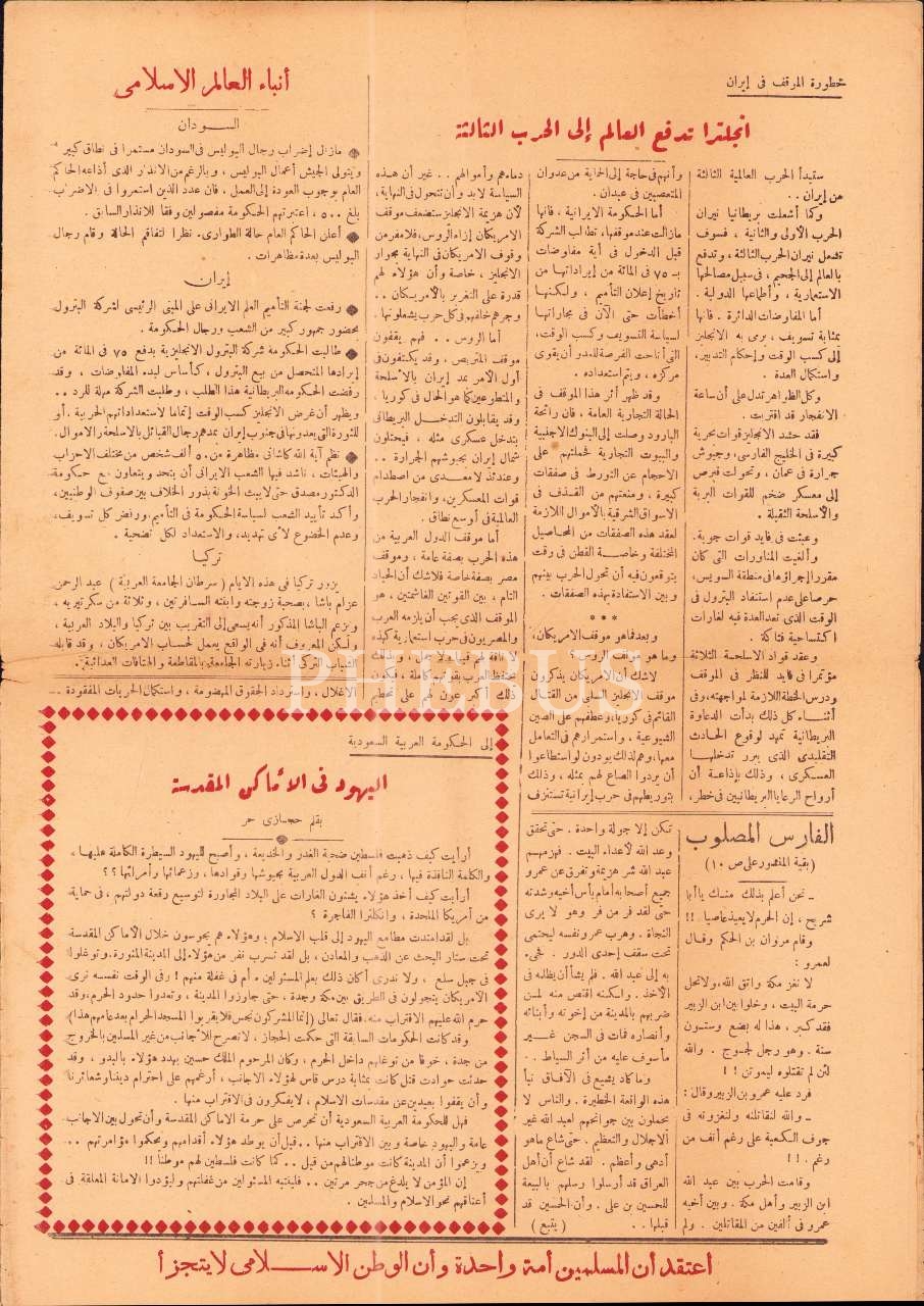 "İslam hilafetinin geri getirilmesi için çalışmalıyız", "Kutsal mekânlardaki Yahudiler", "İngiltere dünyayı üçüncü dünya savaşına itiyor", "İslam dünyasından haberler" vd. başlıklı yazıları içermektedir.