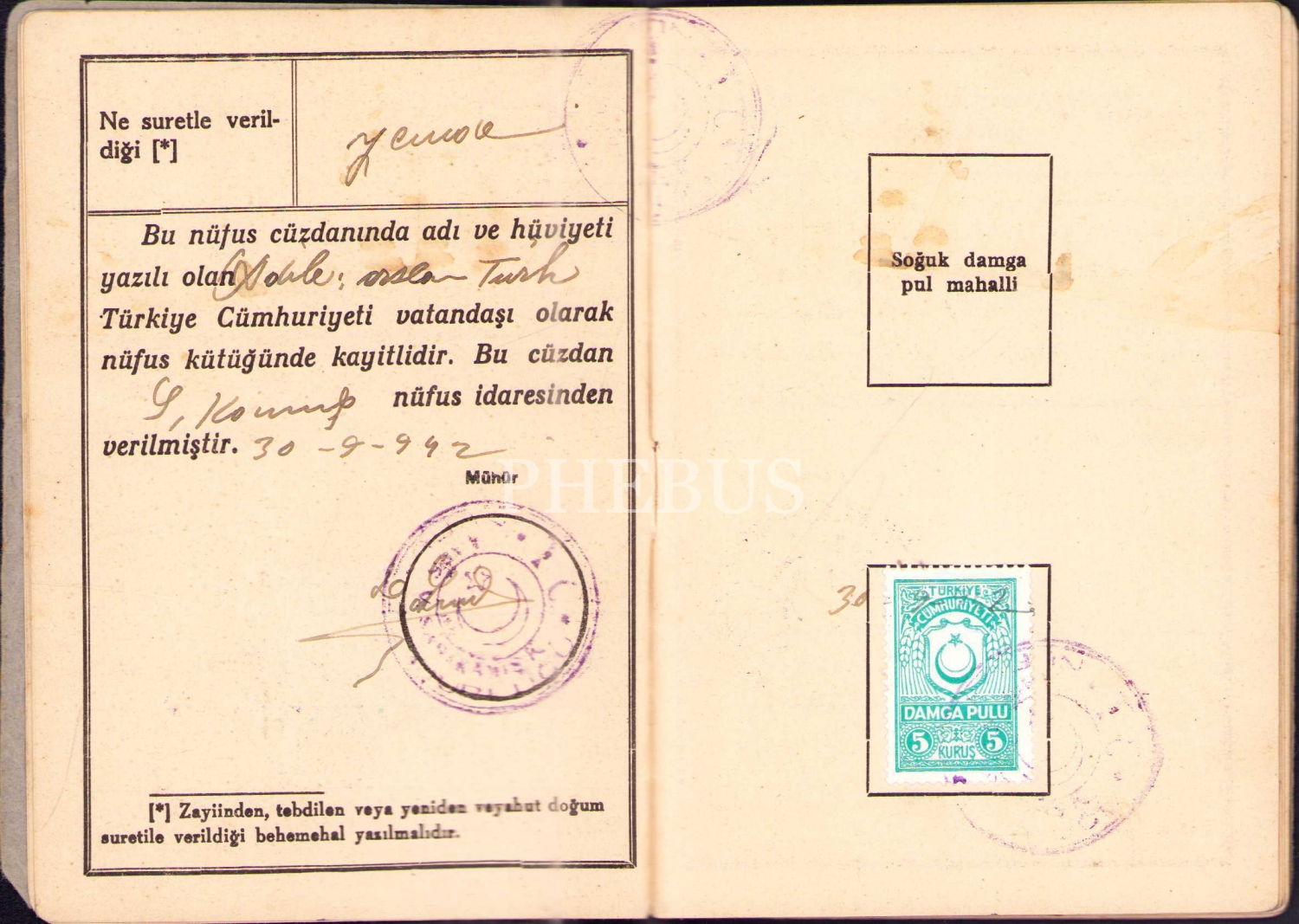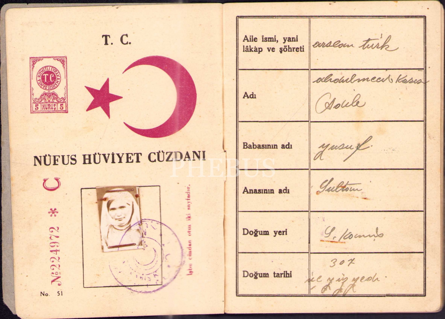 1942 tarihli ve fotoğraflı nüfus cüzdanı, 10x14 cm