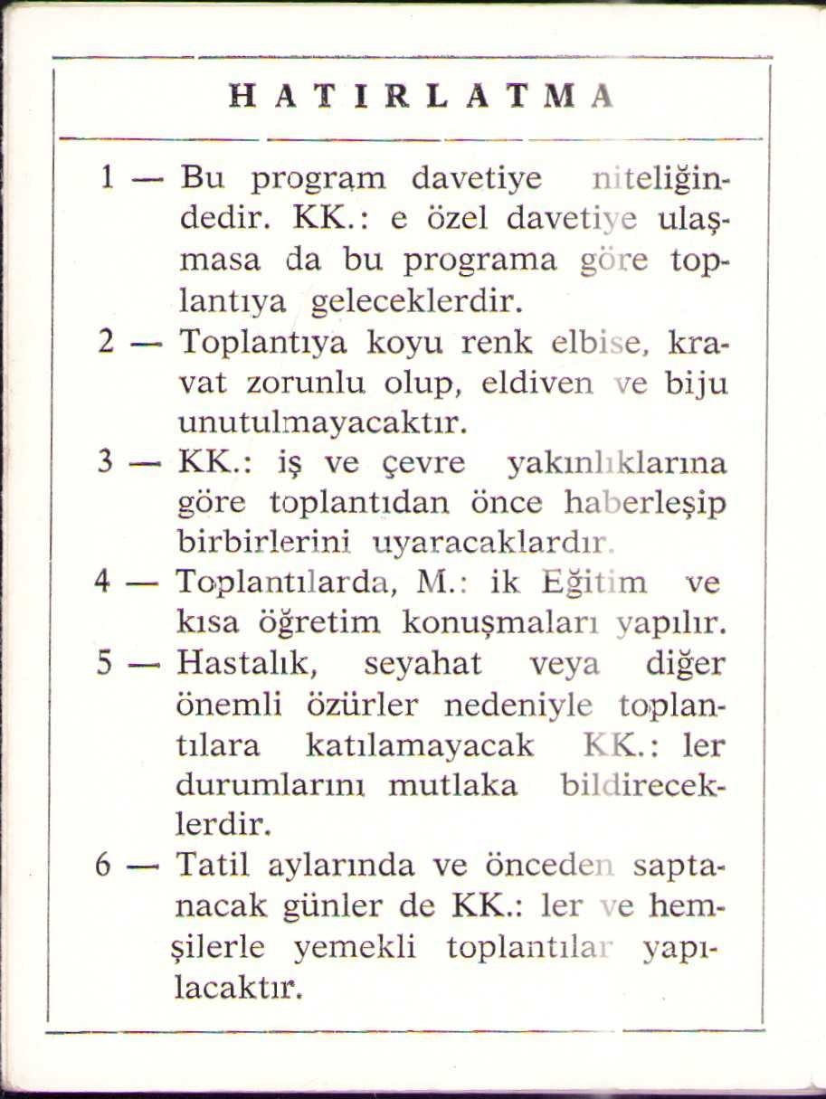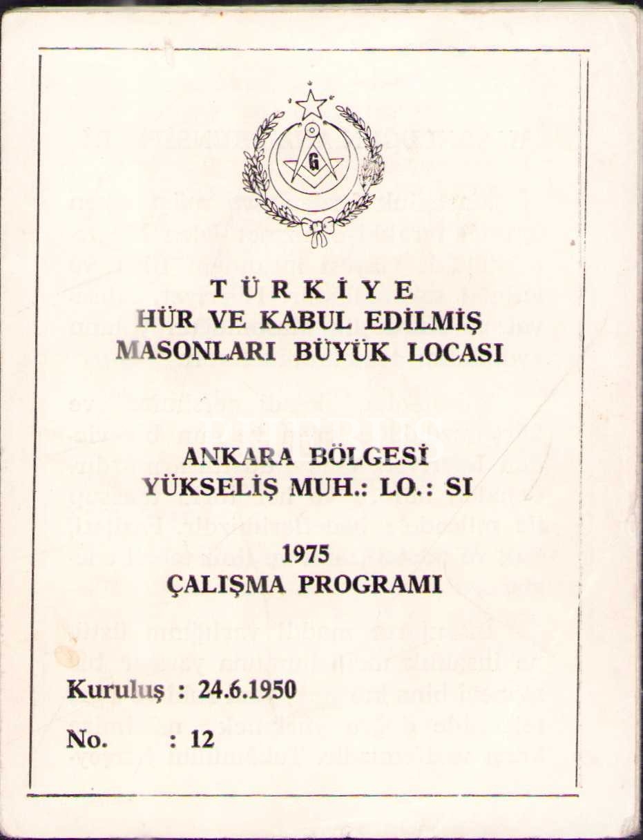 Türkiye Hür ve Kabul Edilmiş Masonları Büyük Locası 1975 çalışma programı, 8x10 cm