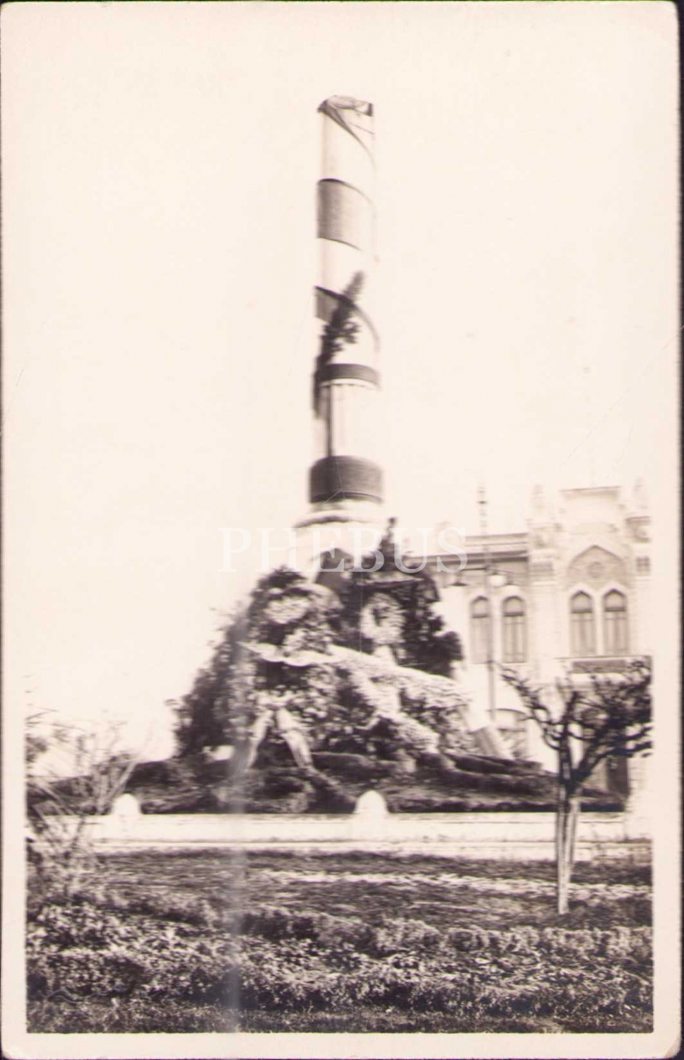Fatih Şehremaneti (Belediye) binası önündeki Tayyare Anıtı (Hava Şehitleri Abidesi), Osmanlıca Foto Münir soğuk damgalı
