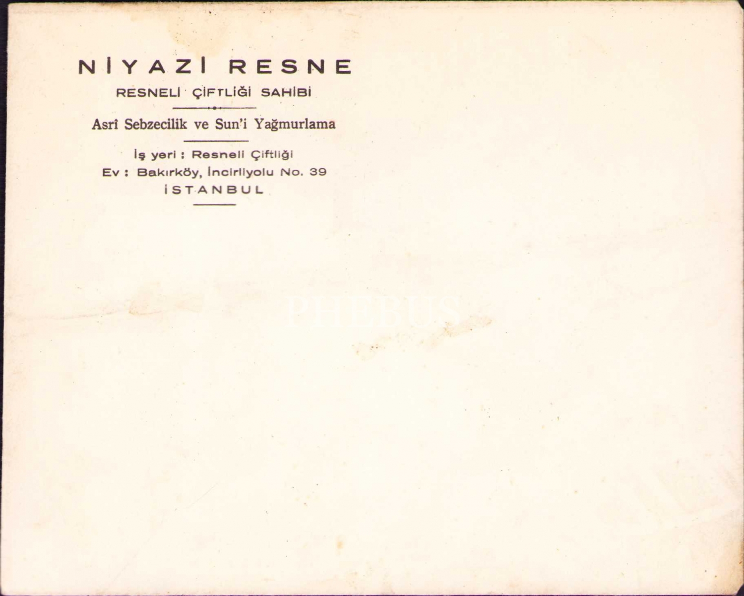 Resneli Çiftliği Sahibi Niyazi Resne antetli zarf ve çiftliğin bekçisine ait fotoğraflı kimlik, kimlik: 6x9 cm