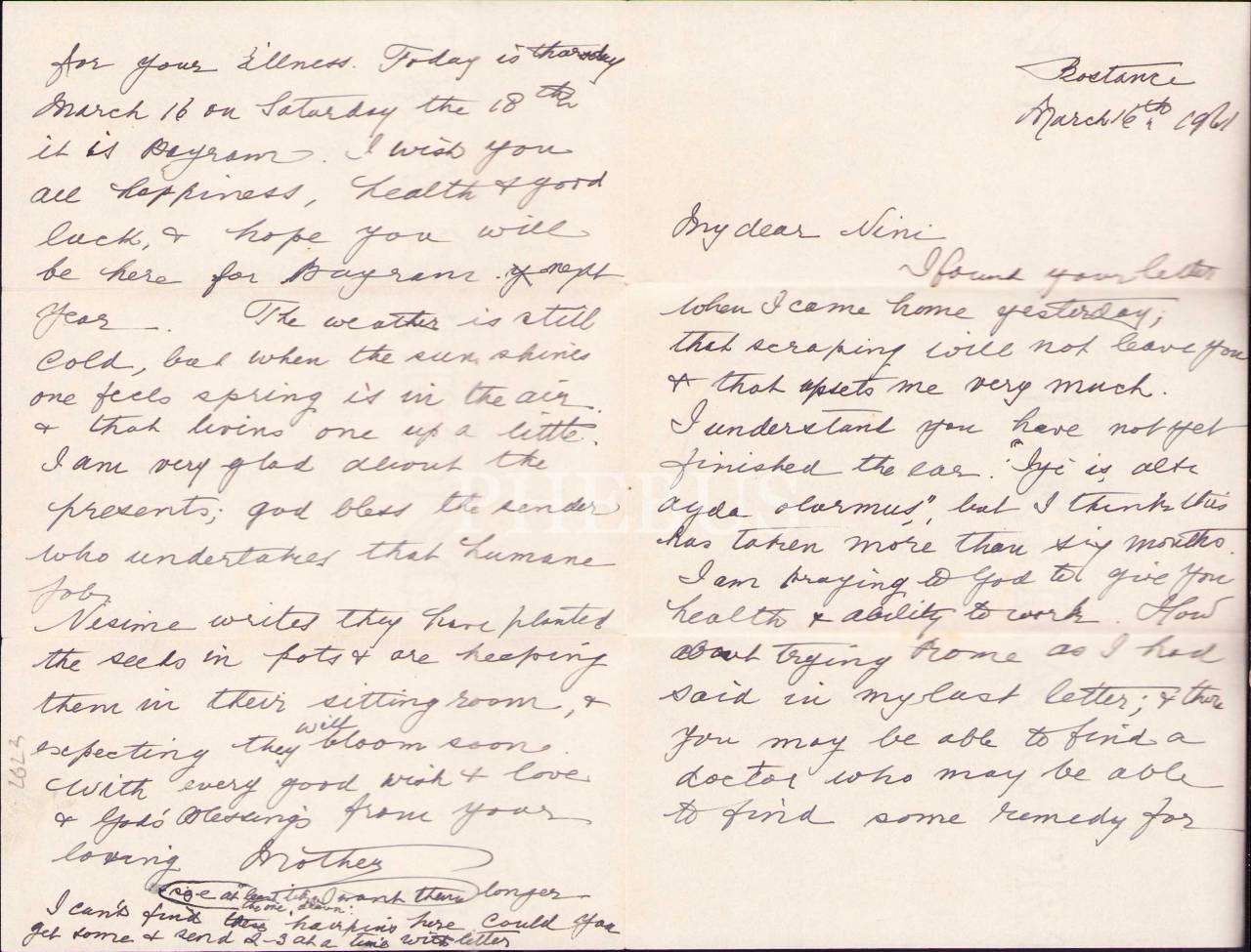 Türkiye´de modern hemşireliğin öncülerinden Safiye Elbi´nin Nihat Elbi´ye hitaben kaleme aldığı İngilizce mektup ve zarfı, mektup: 15x23 cm
