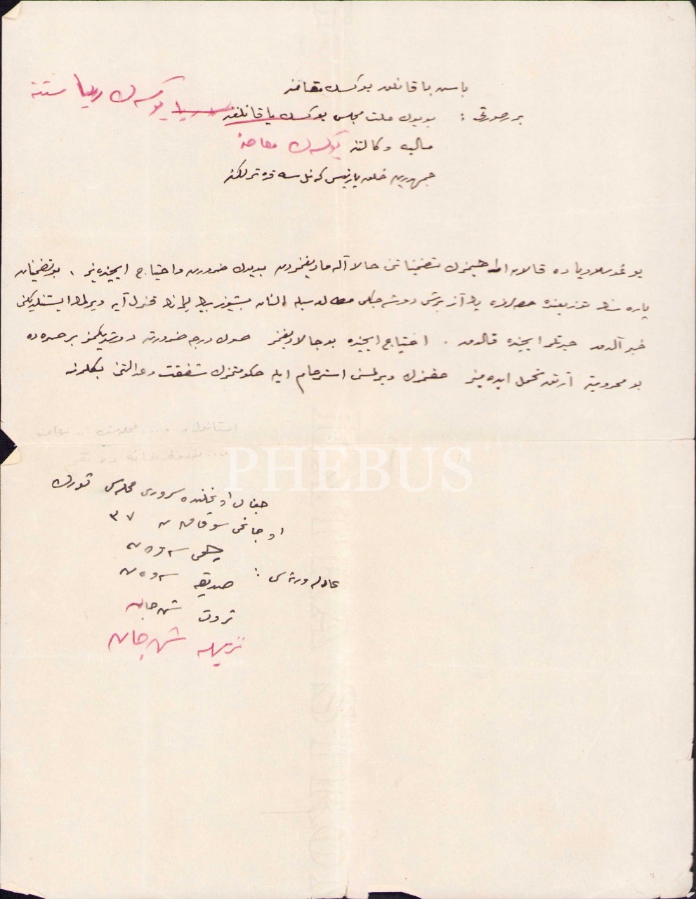Başbakanlık, TBMM, Maliye Bakanlığı ve CHP Genel Sekreterliğine gönderilen dilekçe, 23x29 cm