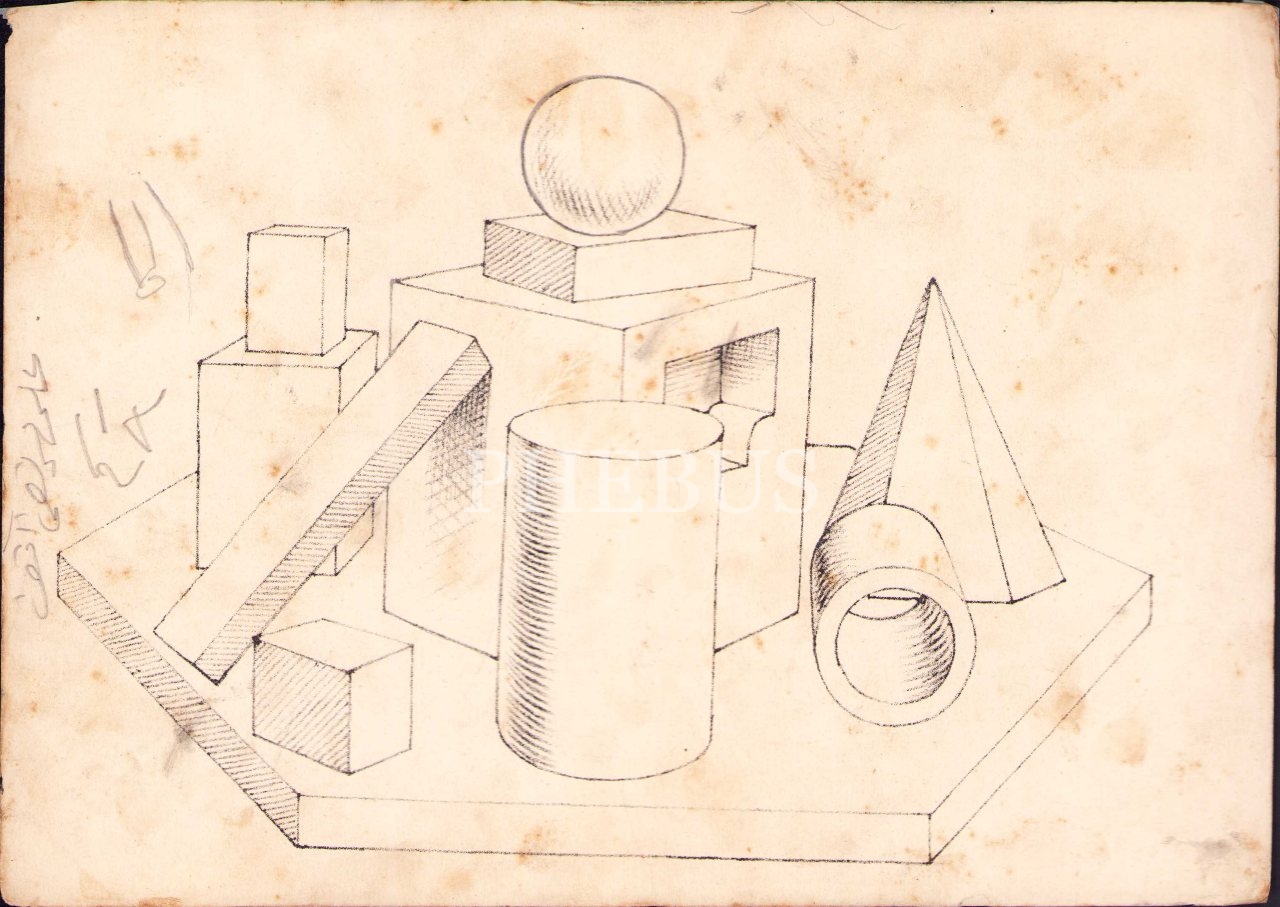 Osmanlıca yazılı kâğıtta baskı geometrik çizim, 18x26 cm