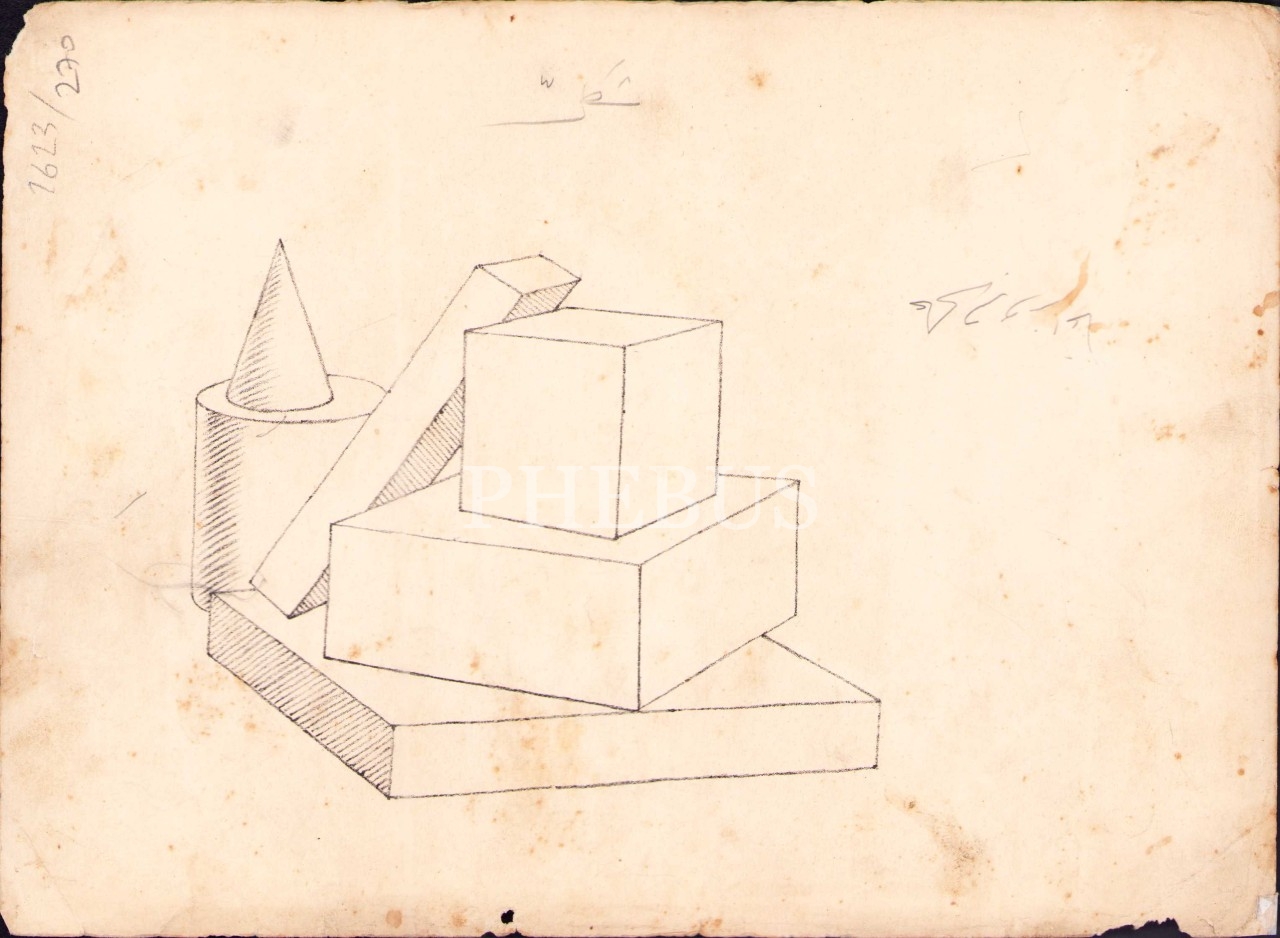 Osmanlıca yazılı kâğıtta baskı geometrik çizim, 19x26 cm
