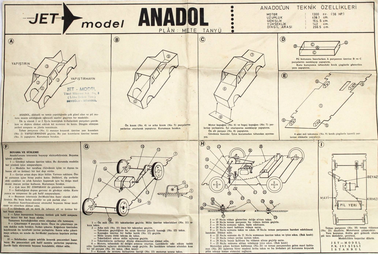 Jet Model, Anadol marka otomobil modeli, çıkartması ve tarifnamesi ile,