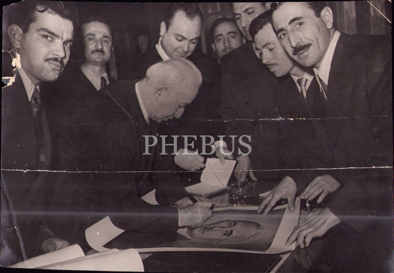 Posterine imza attığı esnada İsmet İnönü, 15x21 cm, kırık haliyle