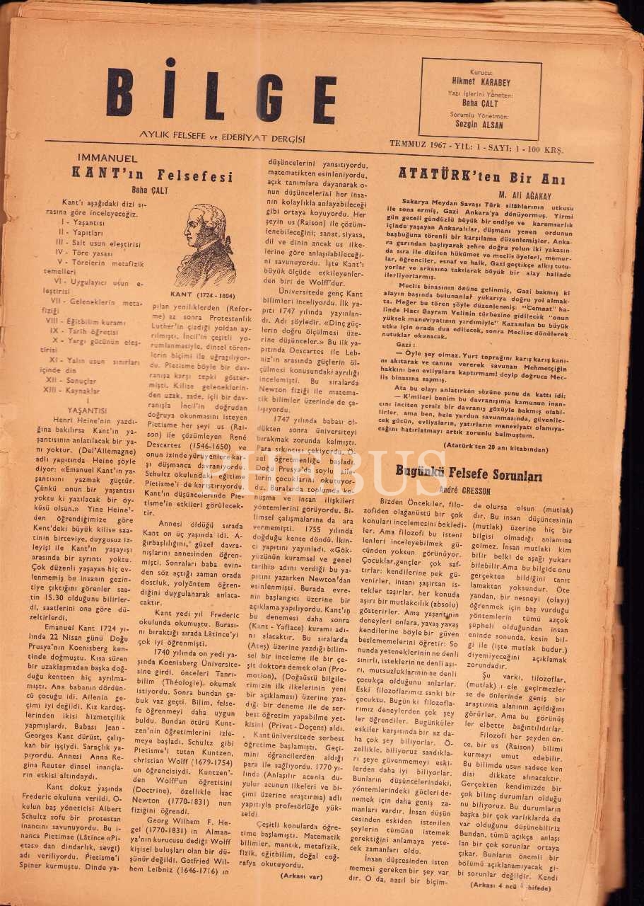 Felsefe ve edebiyat dergisi Bilge´nin 1967-72 yıllarında yayımlanan ilk 20 sayısı, 28x40 cm