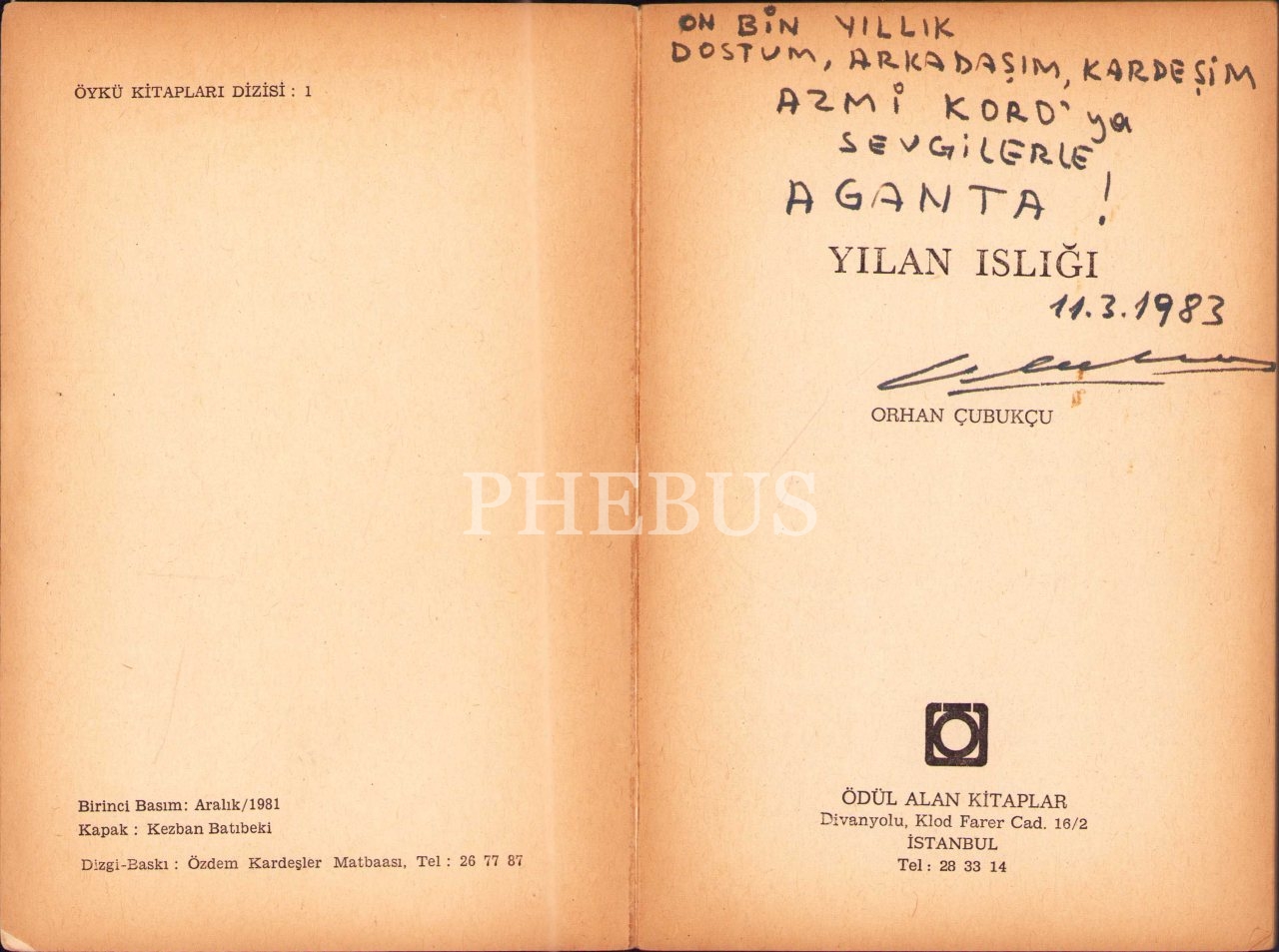 YILAN ISLIĞI, Orhan Çubukçu, ithaflı ve imzalı, Ödül Alan Kitaplar, İstanbul 1981, 74 s., 13x19 cm