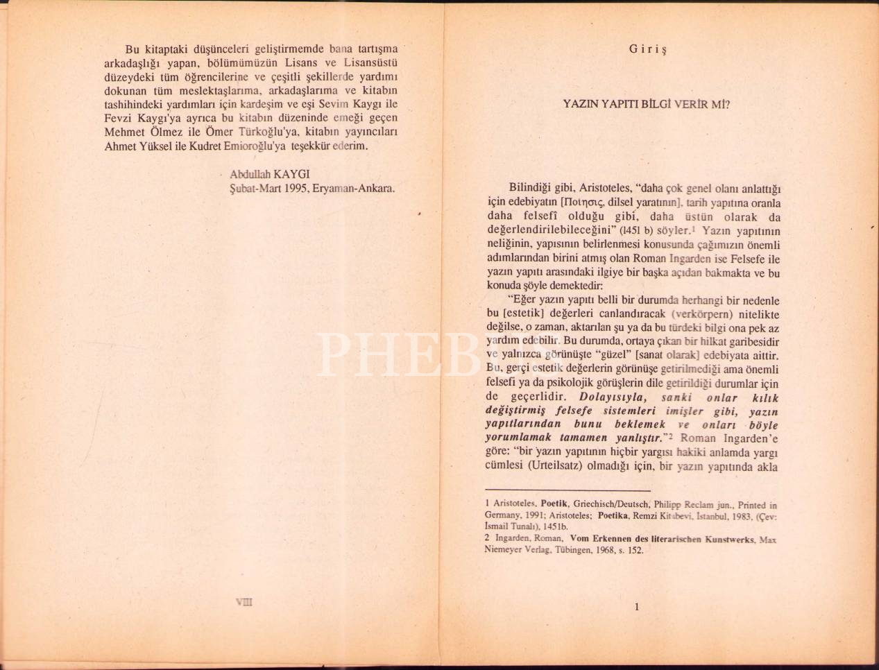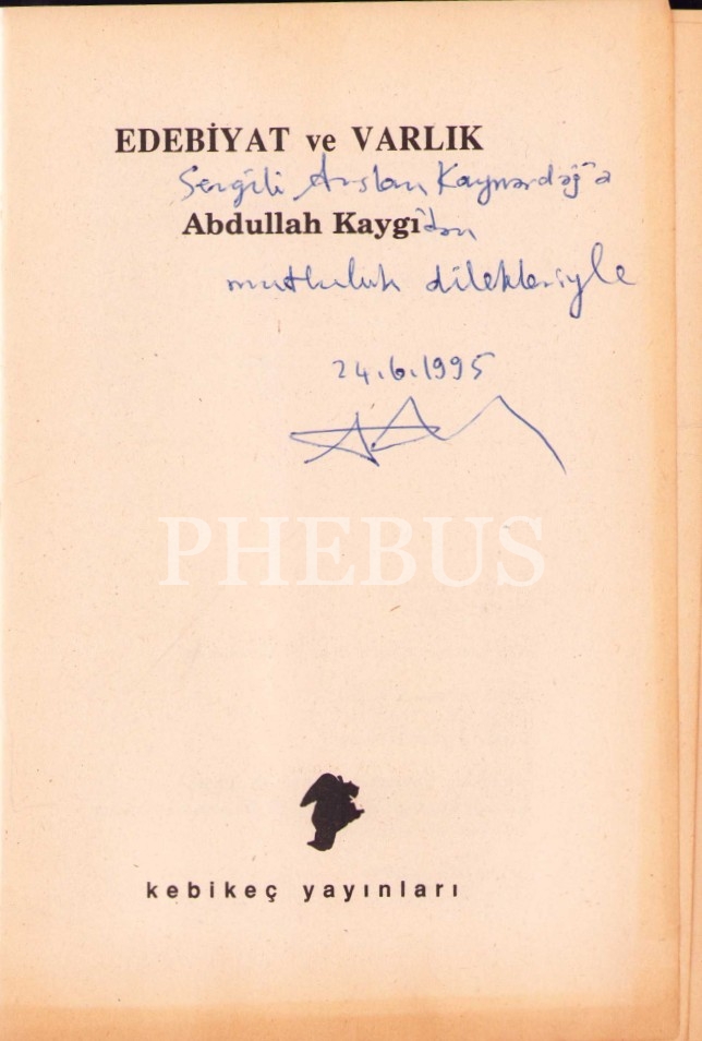 EDEBİYAT VE VARLIK, Abdullah Kaygı, ithaflı ve imzalı, Kebikeç Yayınları, Ankara 1995, 342 s., 13x20 cm