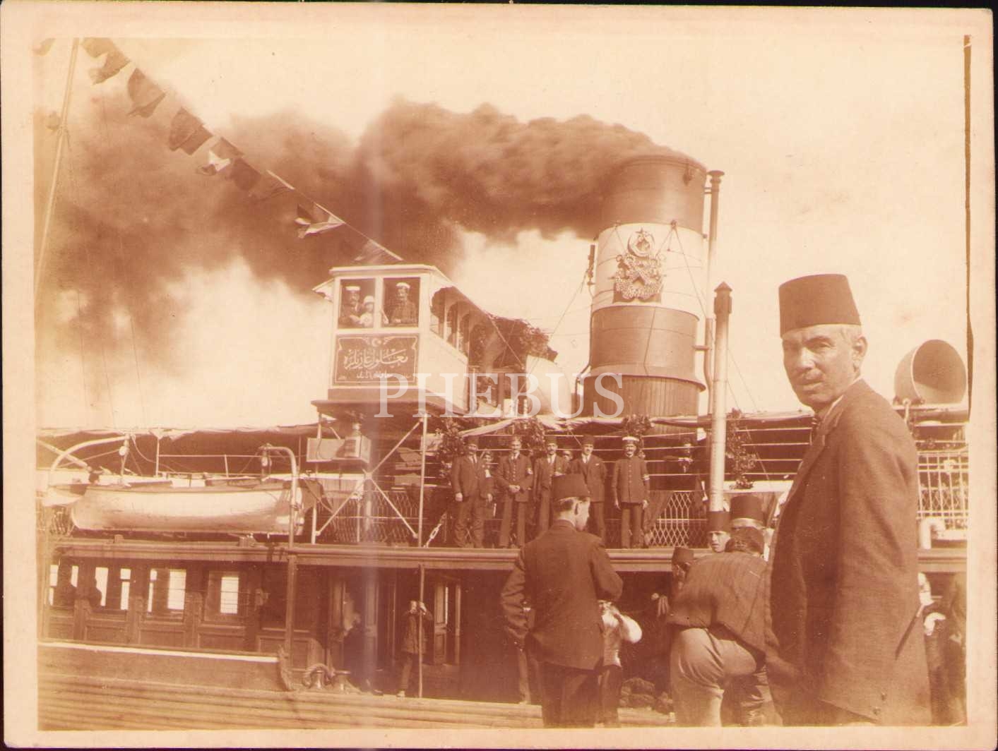 "Malul Gazilere Muavenet [Yardım] Pazarı" yazısının görüldüğü Büyükada vapuru, 1922 tarihli albümin fotoğraf, 9x12 cm