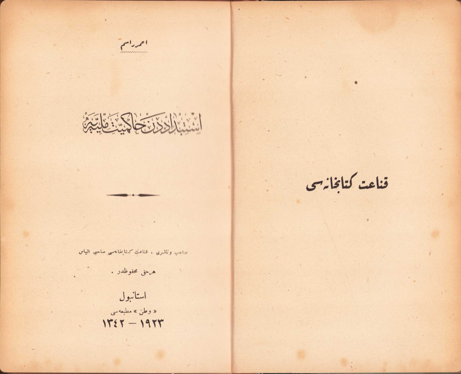 İstibdattan Hakimiyet-i Milliyeye - 2 cilt bir arada, Ahmet Rasim, Vatan Matbaası, İstanbul, 1342, Osmanlıca, 468 sayfa,14x19cm