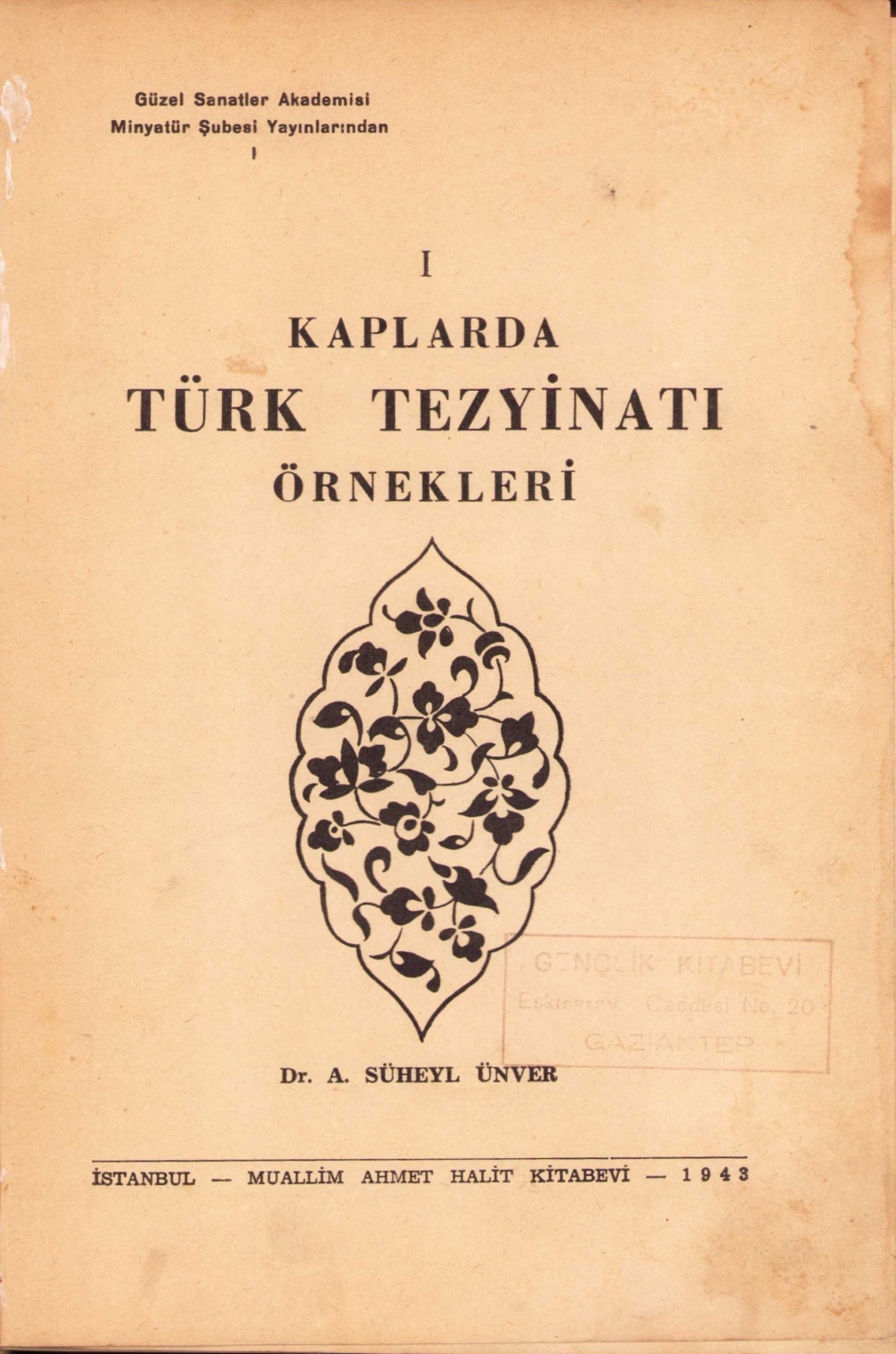3 kitap bir arada, Kaplarda Türk Tezyinatı Örnekleri, Süheyl Ünver, İstanbul, 1943, Güzel Sanatlar Akademisi Minyatür Şubesi Yayınlarından, 16x23cm