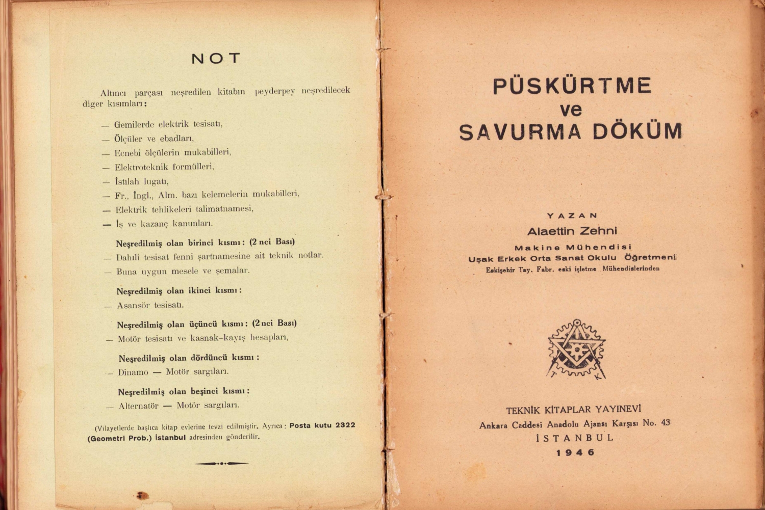 Püskürtme ve Savurma Döküm, Alaettin Zehni,1946, Madenler ve Halitaları, Orhan İgot, Konya