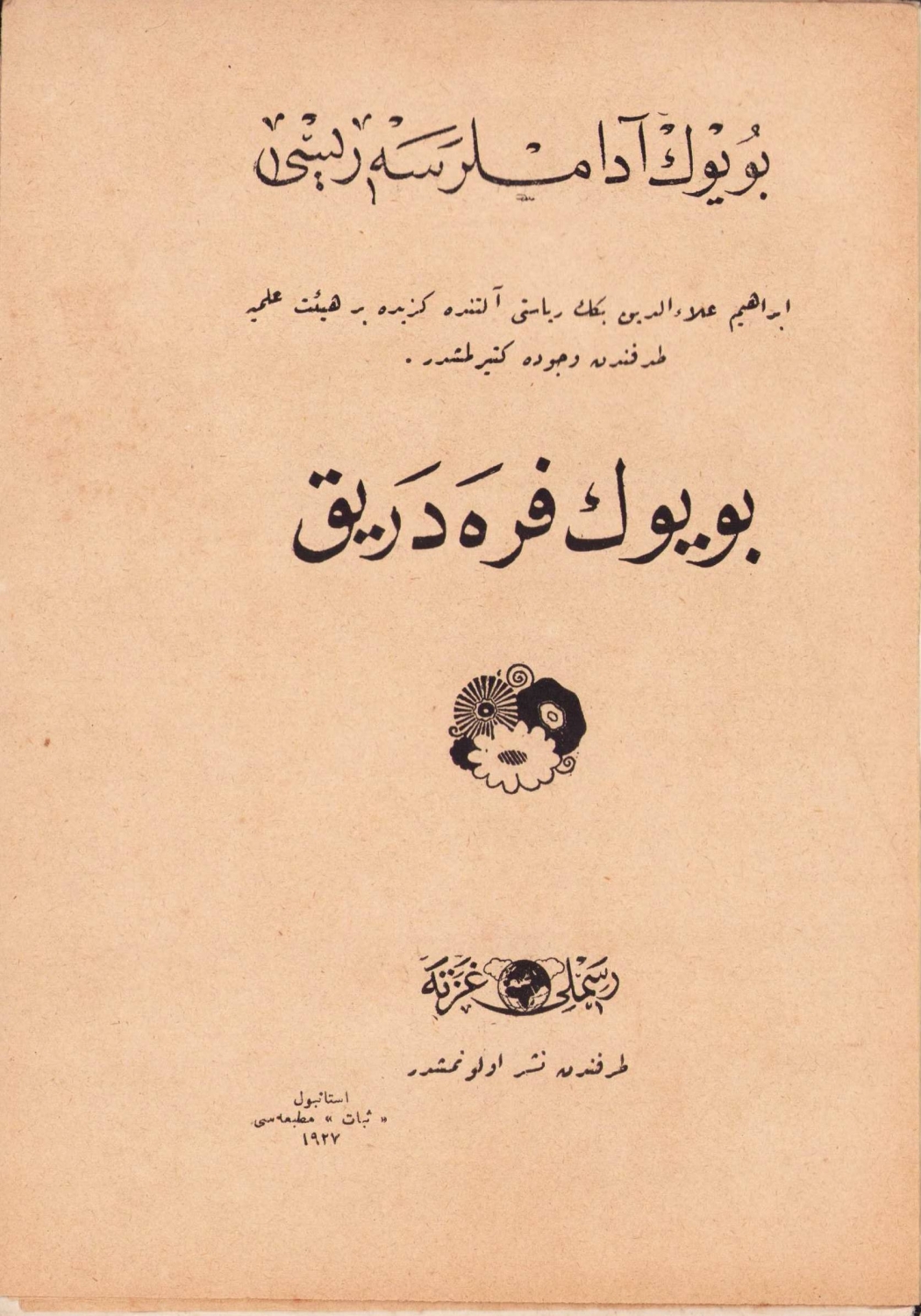 Büyük Frederik: Büyük Adamlar Serisi; 1. Cilt No:13, İbrahim Alaaddin (Gövsa) Başkanlığında Bir Heyet, Sebat Matbaası, İstanbul, 1927, Osmanlıca, resimli, 16 sayfa, ÖZEGE; 2729, 14x20cm