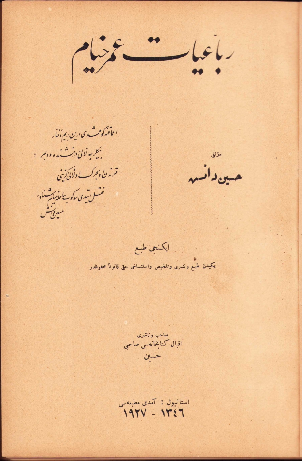 Rubaiyat-ı Ömer Hayyam, Hüseyin Daniş, ikinci baskı, Amedi Matbaası, İstanbul, 1346, Osmanlıca, resimli, 320 sayfa, 16x23cm