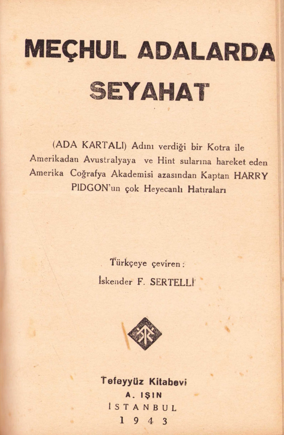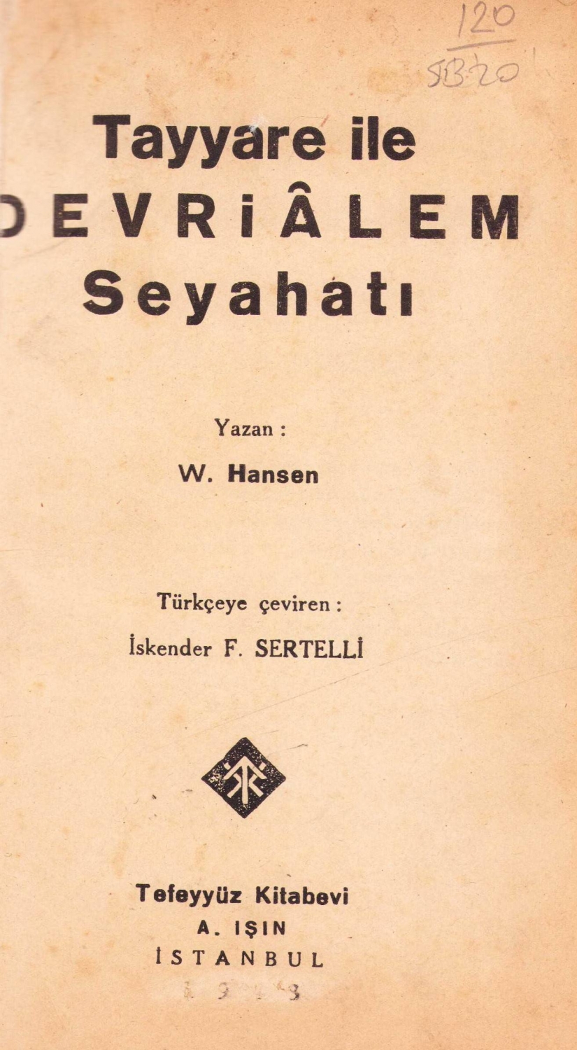 Küçük Macera Romanları Serisi: Tayyare ile Devri Alem Seyahati, W. Hansen, çev., İskender F. Sertelli, İstanbul, 1943, resimli, 620 sayfa, 15x21cm