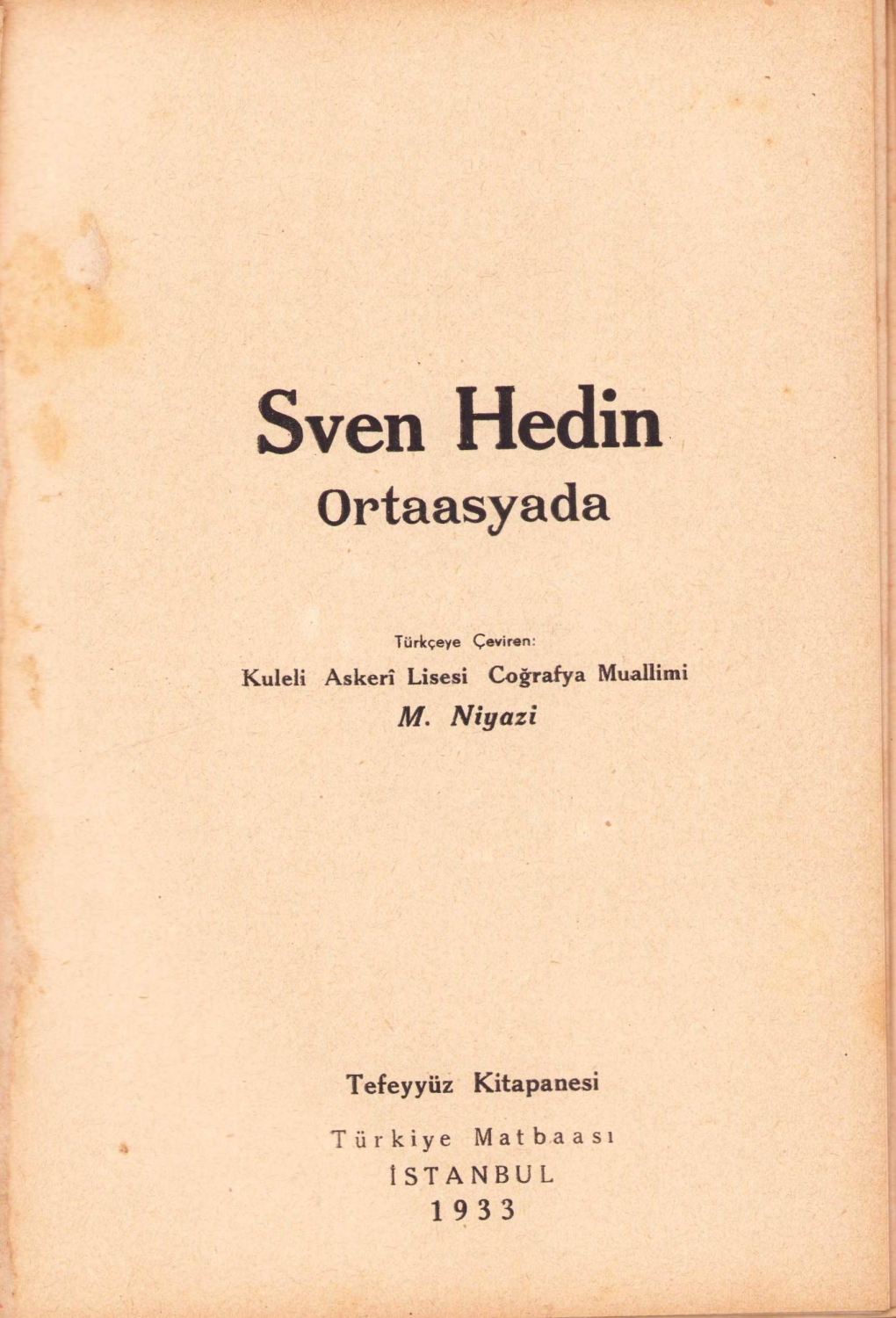2. Sven Hedin Ortaasyada, çev., M. Niyazi, İstanbul, 1933