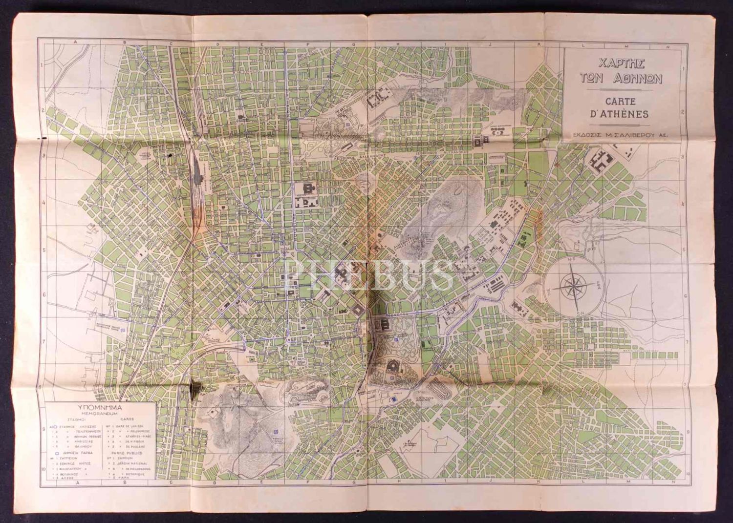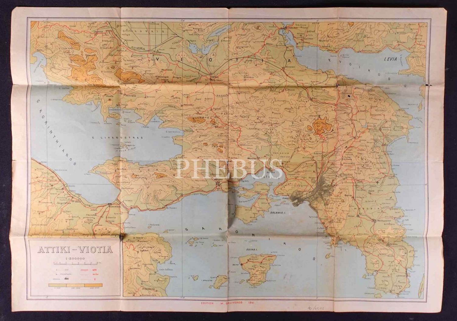 Attiki-Viotia/Yunanistan haritası, ed. M. Saliveros, 1941, 50x70 cm, ortalarda yırtık mevcut haliyle