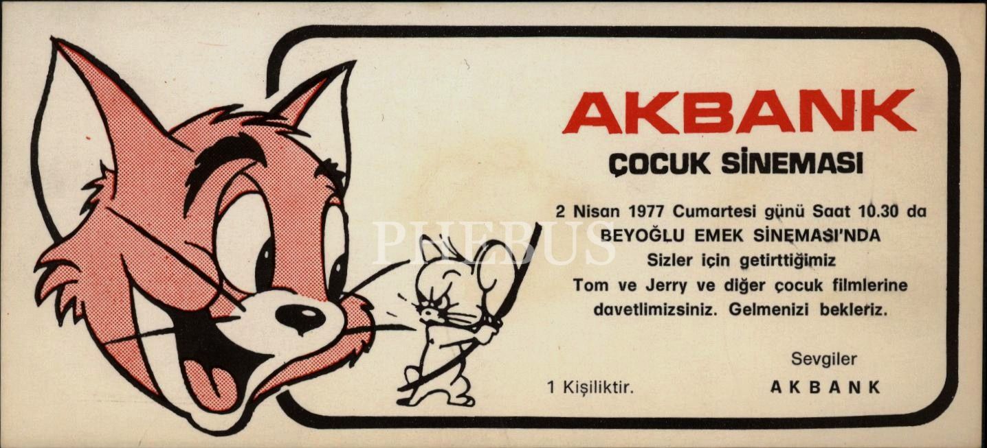 Akbank çocuk sineması davetiyesi, Beyoğlu/İstanbul 1977, 8x18 cm