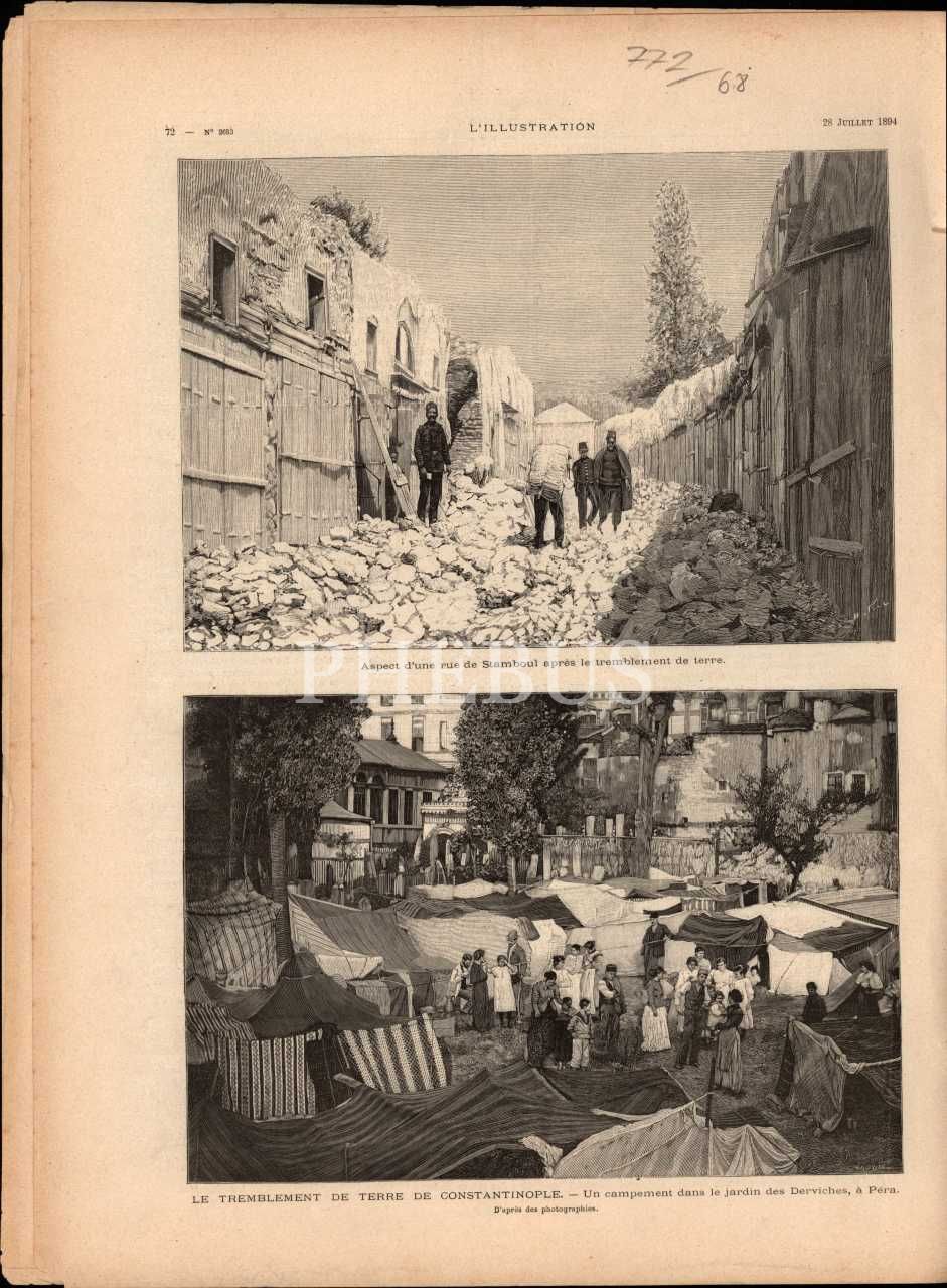 L´Illustration dergisinin İstanbul depremine dair gravürler içeren 28 Temmuz 1894 tarihli sayısı, 29x39 cm