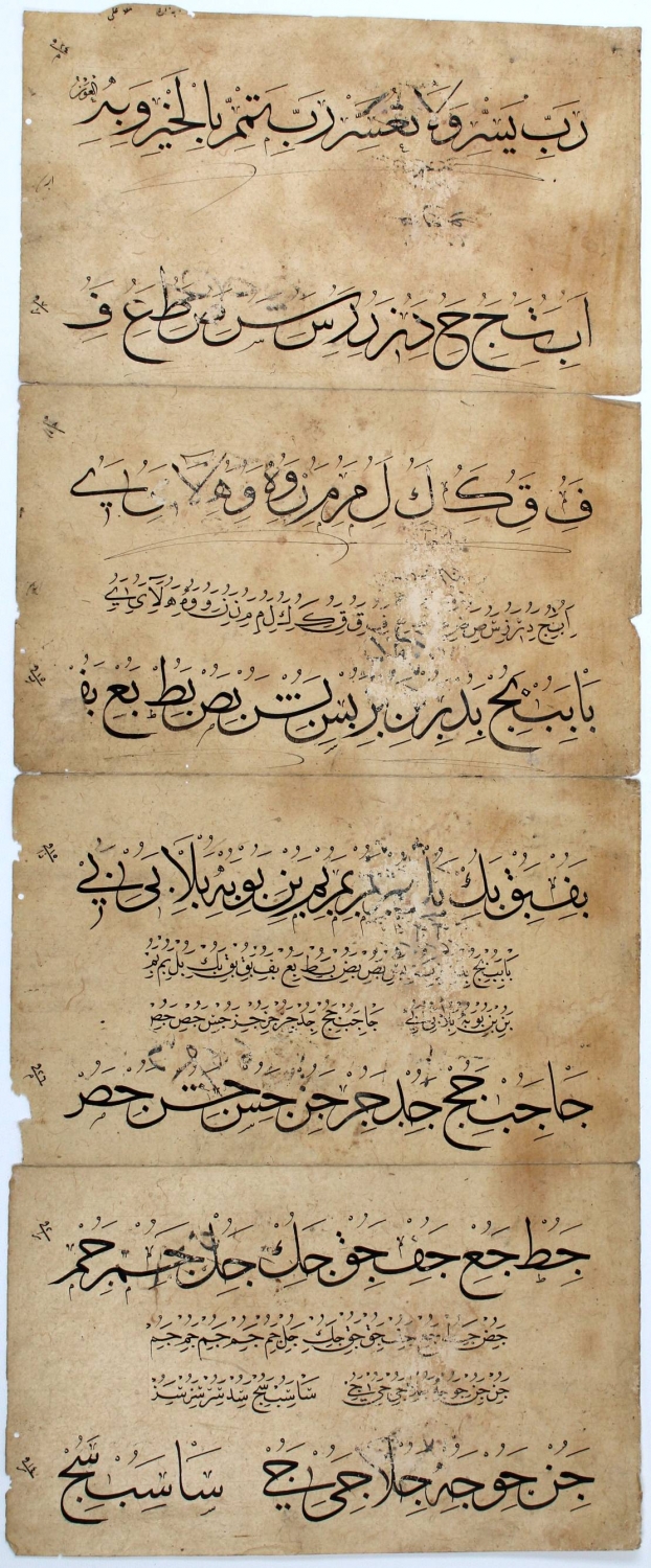 sülüs-nesih Rabbiyessir ve hurufat meşki, Kebecizade notu var, 22x54 cm