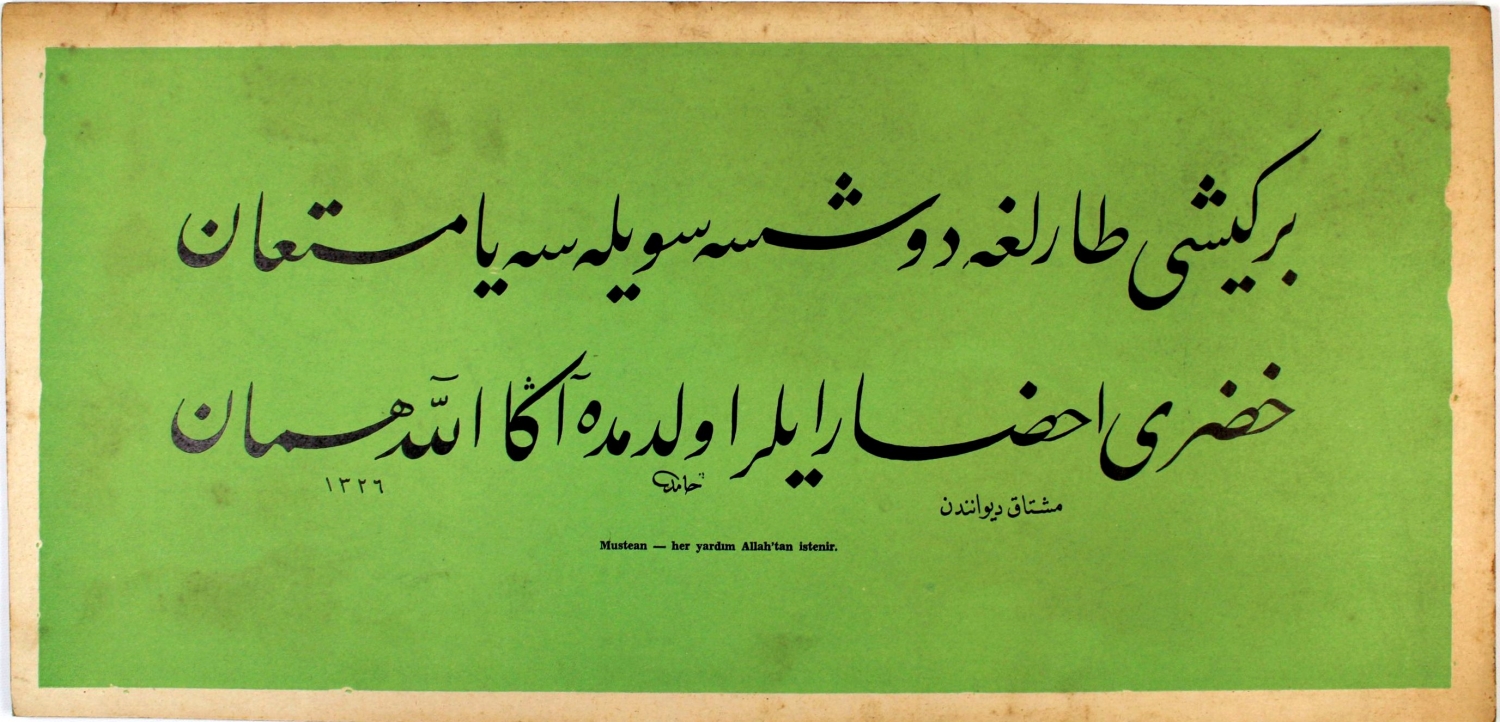 Osmanlıca Müştak Divanından beyit, 47x23 cm.