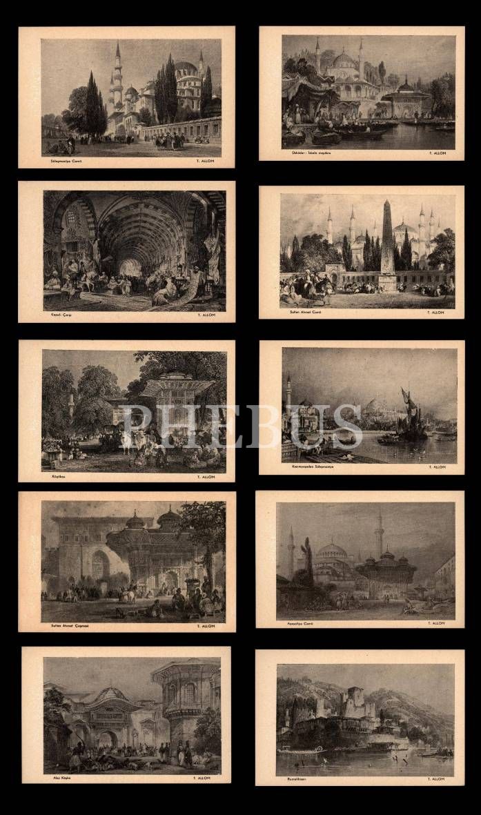 Merkez Laboratuarı´ndan ilaç reklamlı ve T. Allom editörlüğünde 10 adet İstanbul kartpostalı