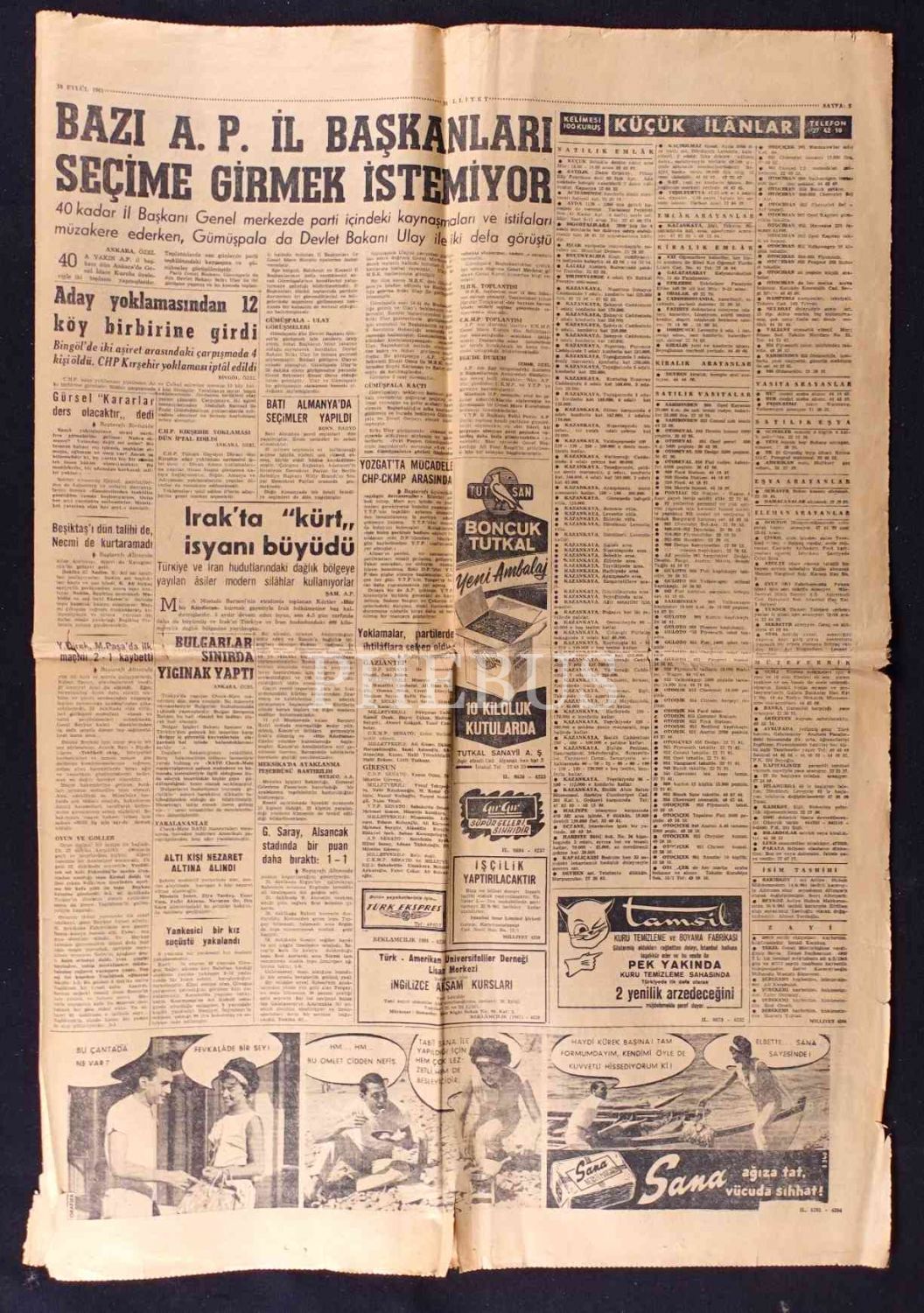 Milliyet gazetesinin "Menderes İdam Edildi" manşetli sayısı, 18 Eylül 1961, 43x62 cm