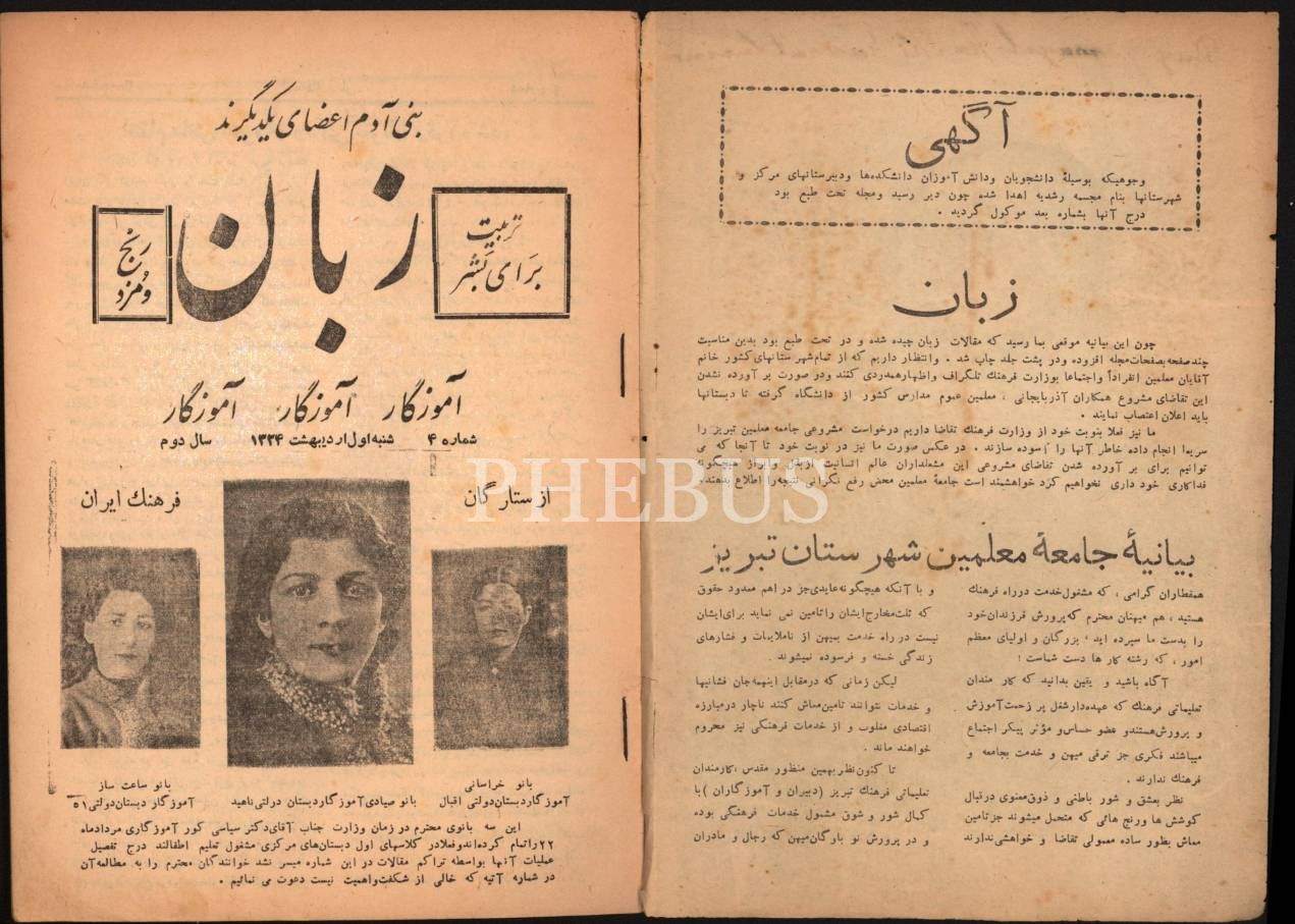 Farsça Zeban dergisinin 4. sayısı, Ürdibehişt 1324, 17x24 cm