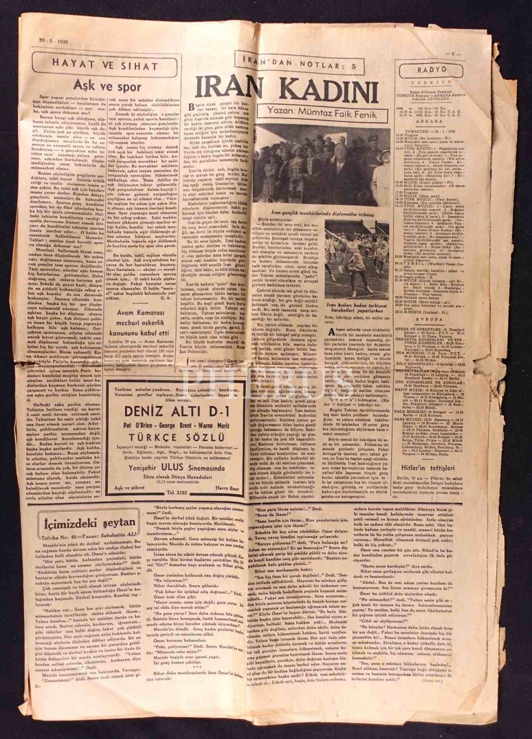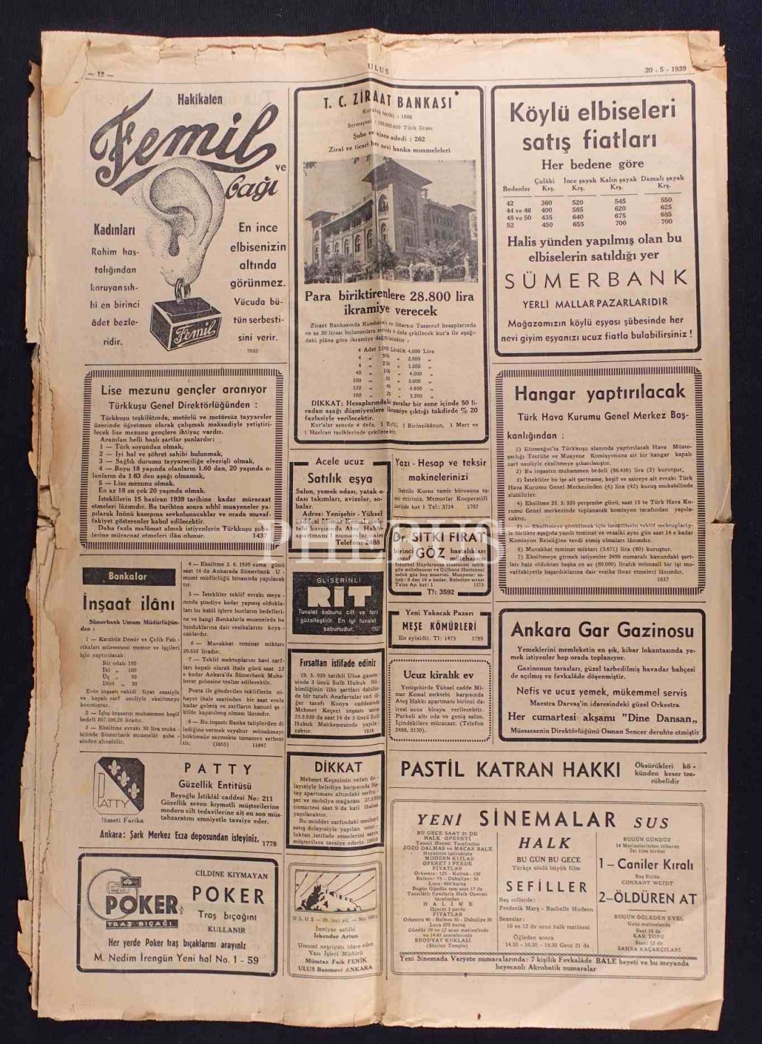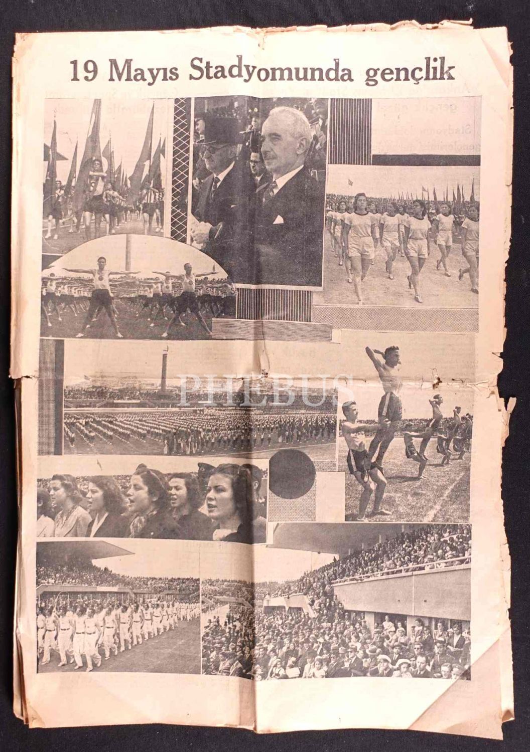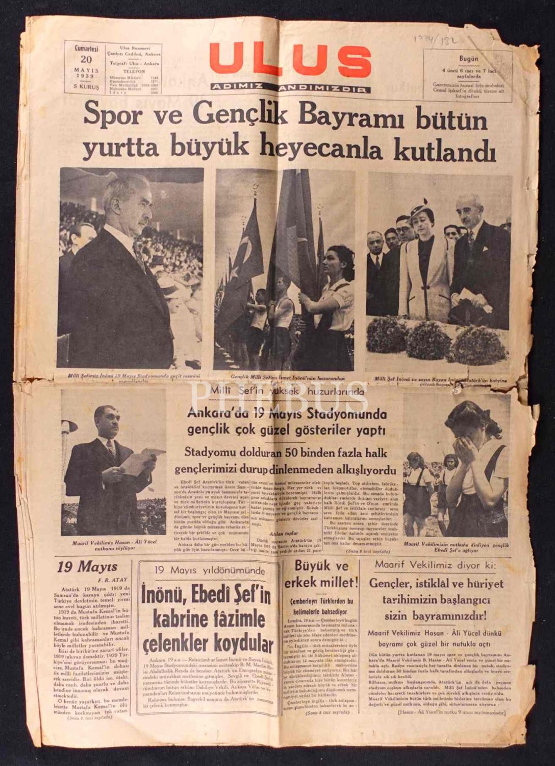 Ulus gazetesinin "Spor ve Gençlik Bayramı bütün yurtta büyük heyecanla kutlandı" manşetli sayısı, 20 Mayıs 1939, 42x60 cm