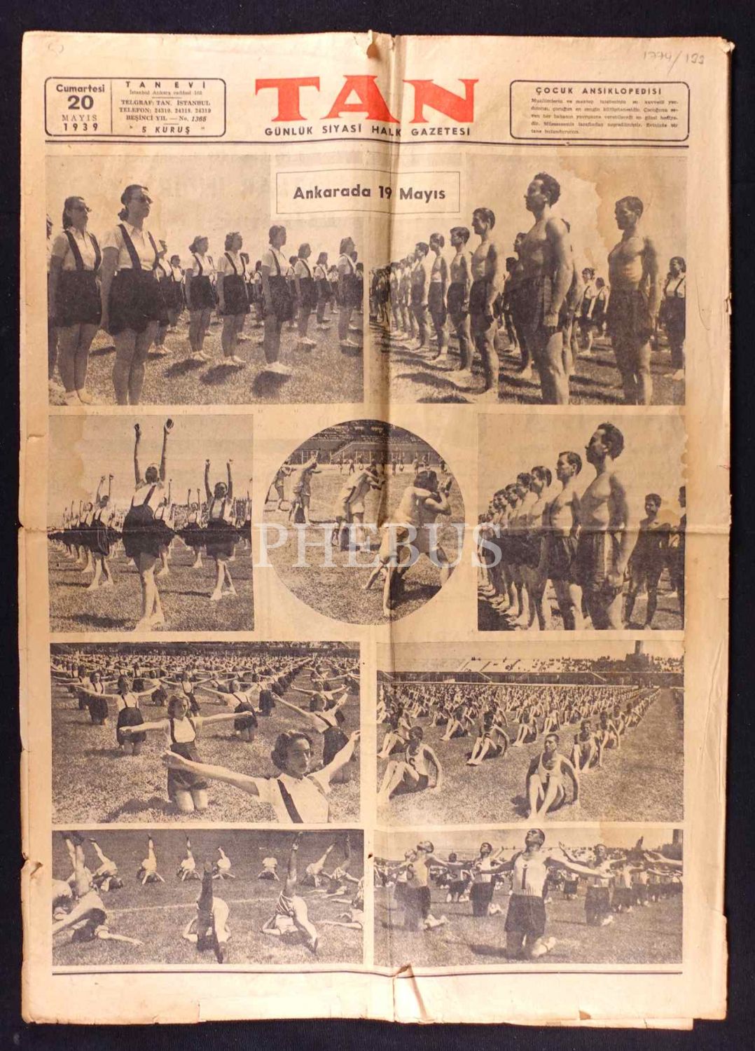 Tan gazetesinin "Ankara´da 19 Mayıs" görselleri içeren 20 Mayıs 1939 tarihli sayısı, 42x59 cm