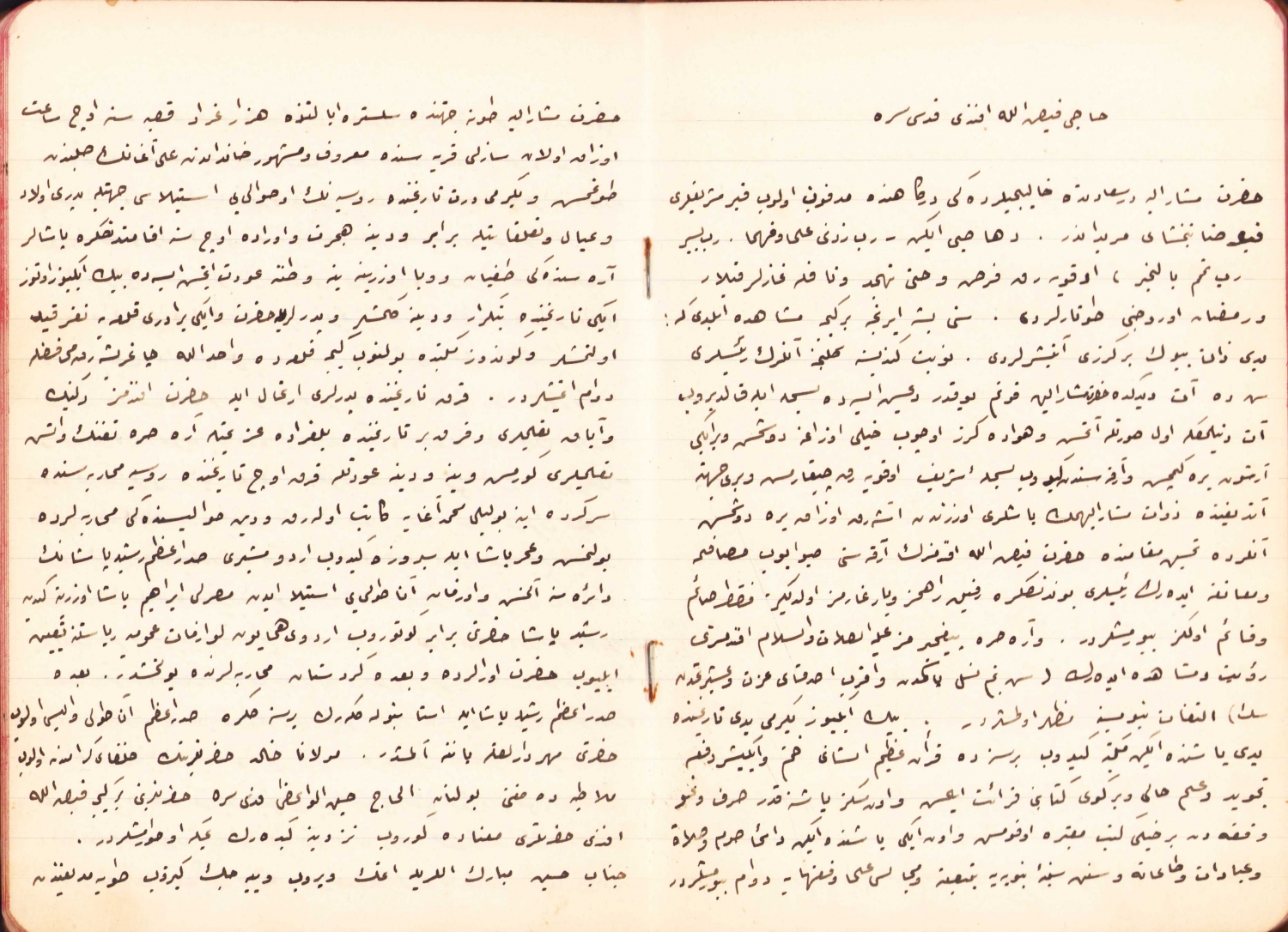 Mevlana Halid Ziyaüddin, Muhammed Kutsi, Hacı Feyzullah bu zatların hayatlarından bilgiler veren el yazması defter. Devamında da ilmihal-i hakikat mevcut. 14x20 cm