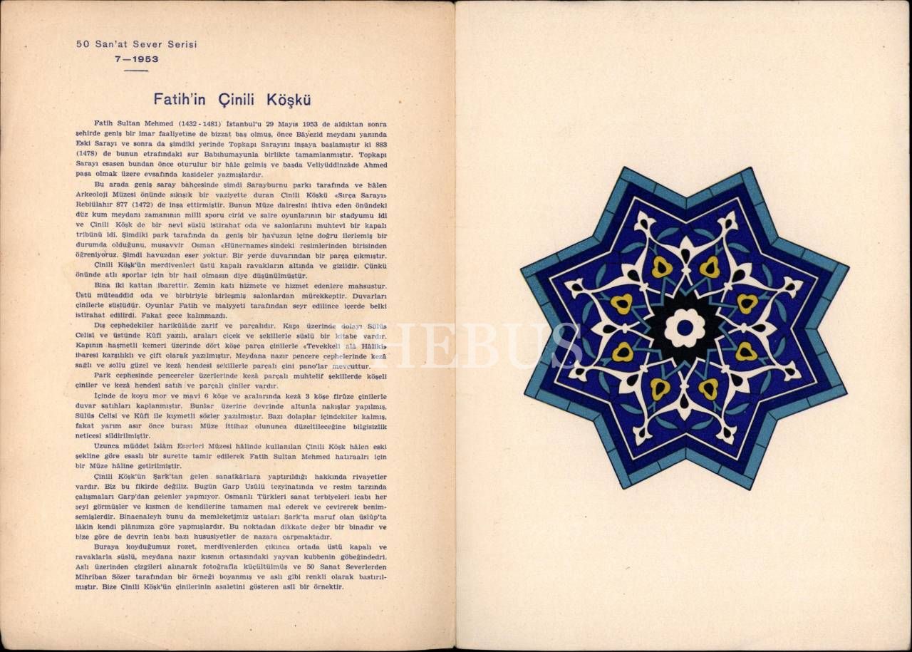 İSTANBUL´UN 500. YILINDA ÇİNİLİ KÖŞK TAVAN GÖBEĞİ, A. S. Ünver, 2 sayfa, 18x23 cm