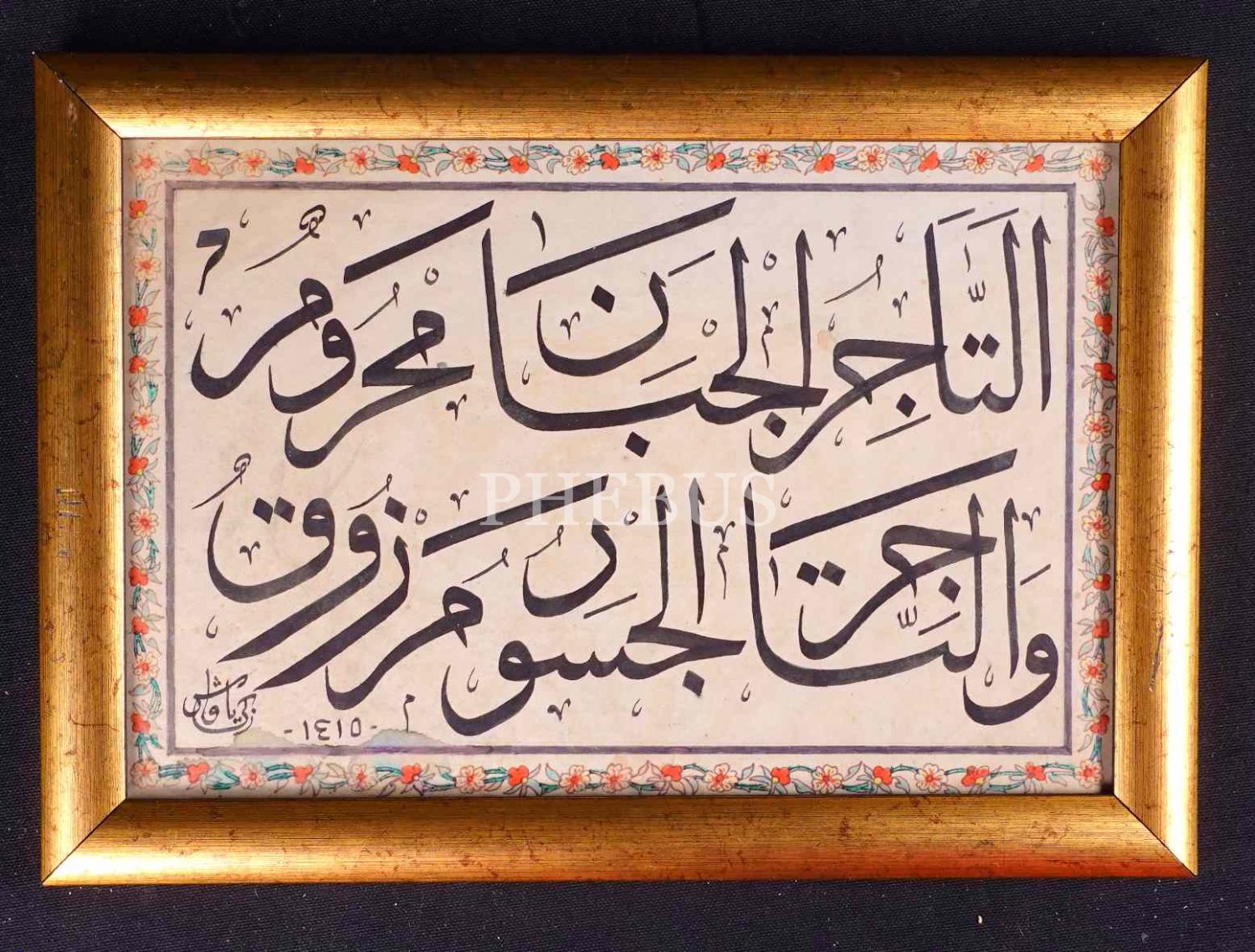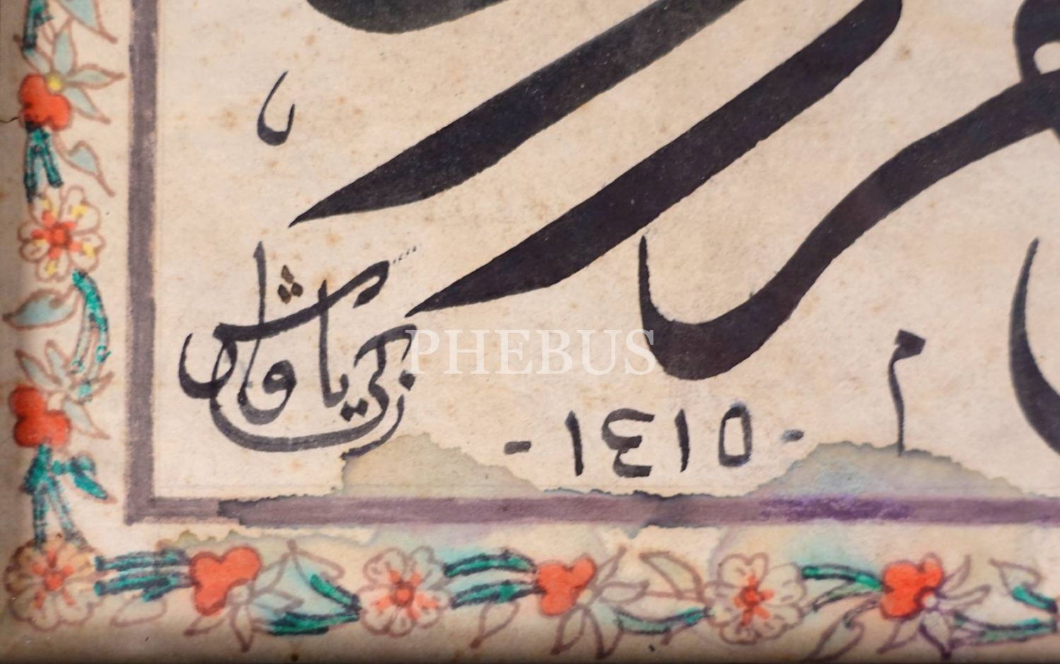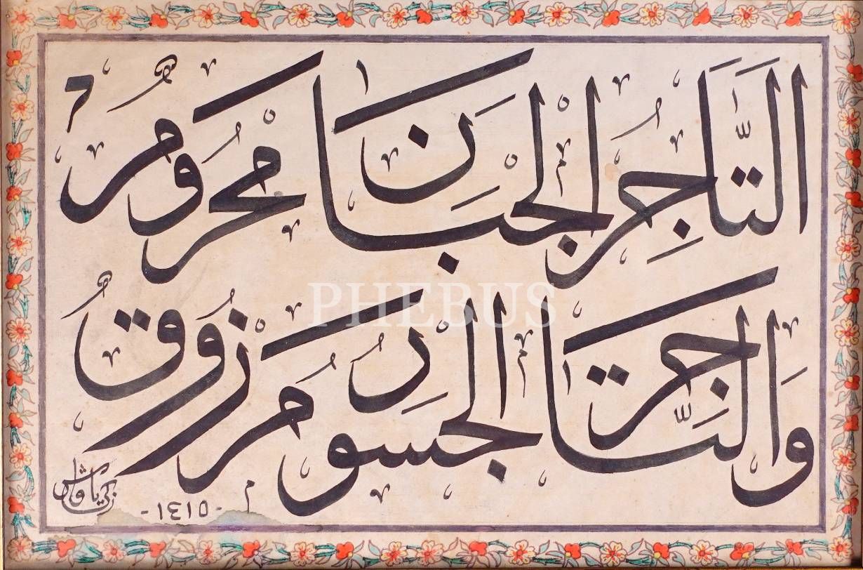 Zeki Yavaş ketebeli ve 1415 tarihli sülüs hadis-i şerif, 22x31 cm